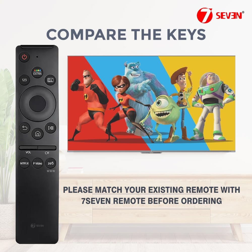 Be the first to review “7 SEVEN® Compatible with Samsung Smart 4K Tv Remote Led UHD QLED Television and Monitor Suitable for Frame Ultra 6 7 8 Series with Hot Keys BN59 Model Without Voice Command, AA Battery, Black”