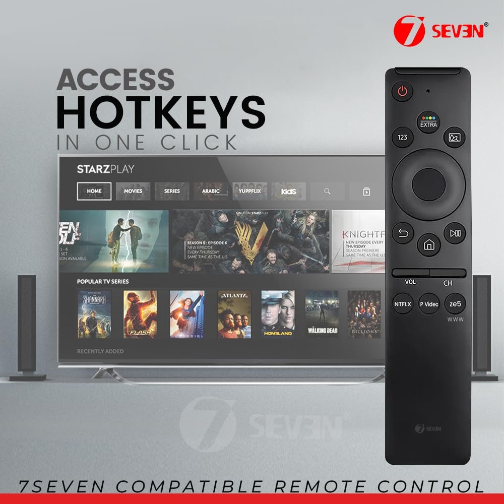 7 SEVEN® Compatible with Samsung Smart 4K Tv Remote Led UHD QLED Television and Monitor Suitable for Frame Ultra 6 7 8 Series with Hot Keys BN59 Model Without Voice Command, AA Battery, Black