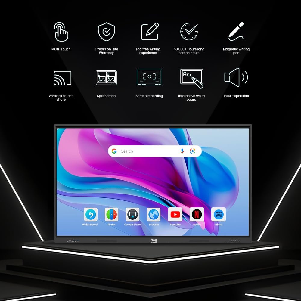 - This Pannel Features 4mm toughened glass, providing durability and resistance to breakage(Automated data processing machine).This product has HDMI, USB, and touch USB ports for versatile connectivity & 2 Pen stylus for accurate writing