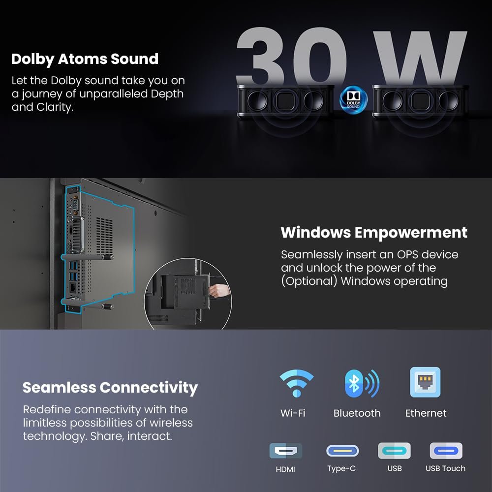 - This product comes with Android operating systems, if you want to operate the window so you have to purchase CPU/OPS separately, We add a 3 Years on-site warranty for your enhanced experience