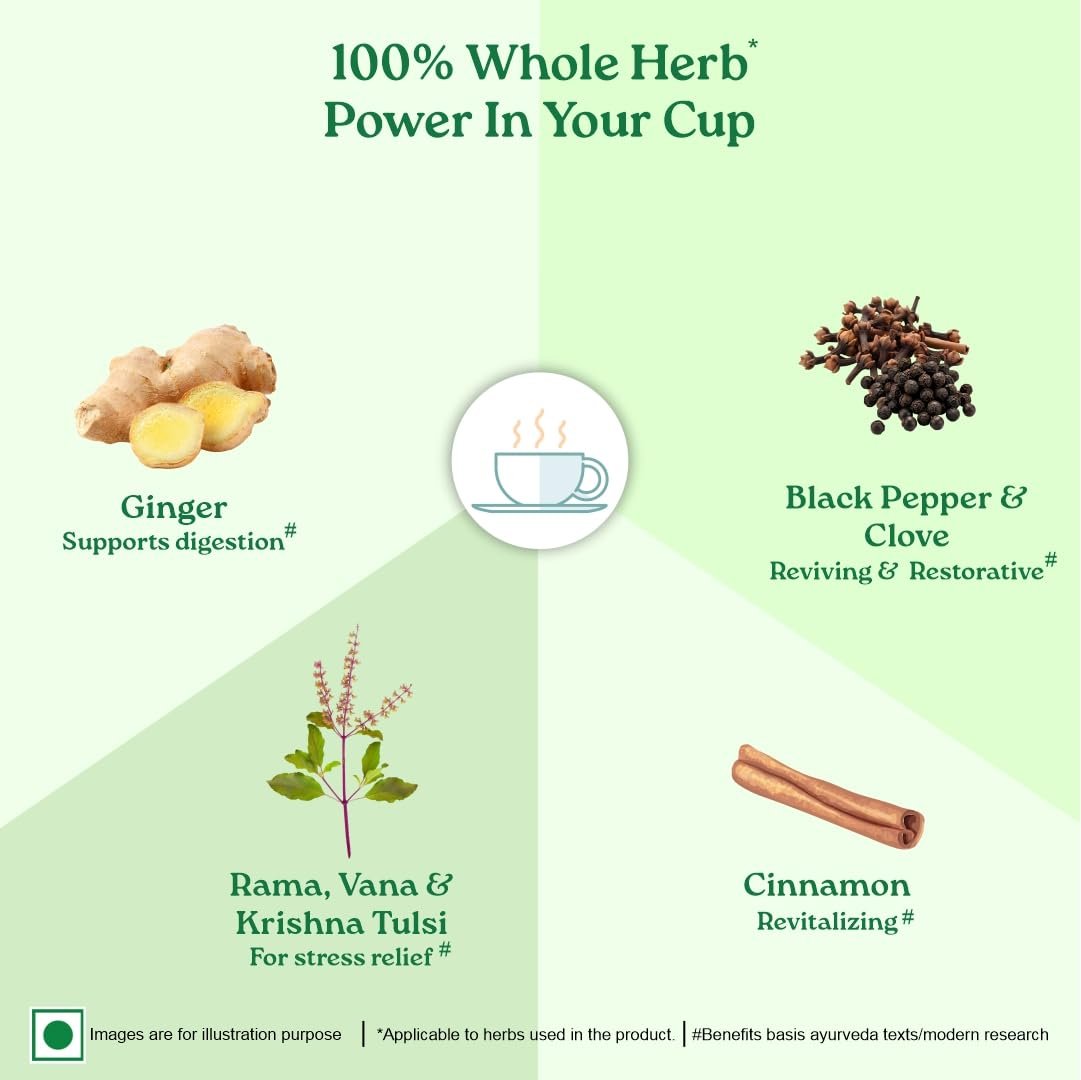 • Certified Organic & Pure – Organic India Tulsi Masala Chai is made with certified organic whole herbs, staple-free, unbleached filter paper tea bags, ensuring purity and sustainability.