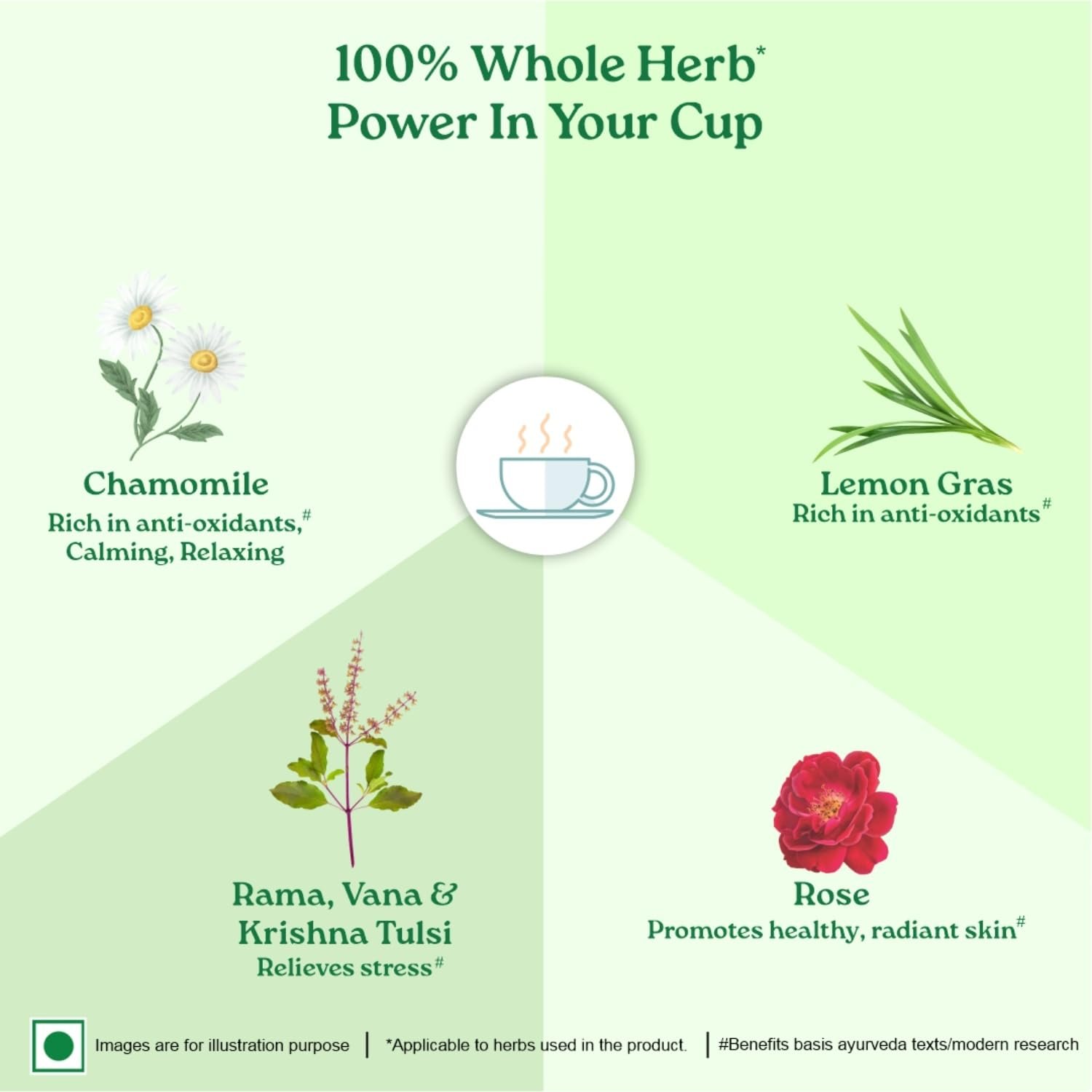- Dosage: – 1 infusion bag to be infused in 120 ml hot boiling water for one time use, and to be taken 2-3 times daily