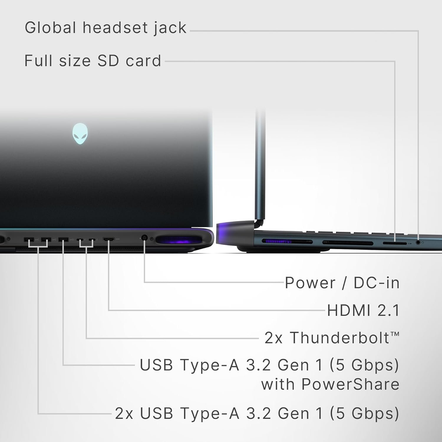 • Keyboard: English US CherryMX ultra low-profile mechanical keyboard with per-key AlienFX RGB lighting