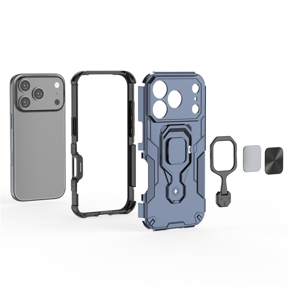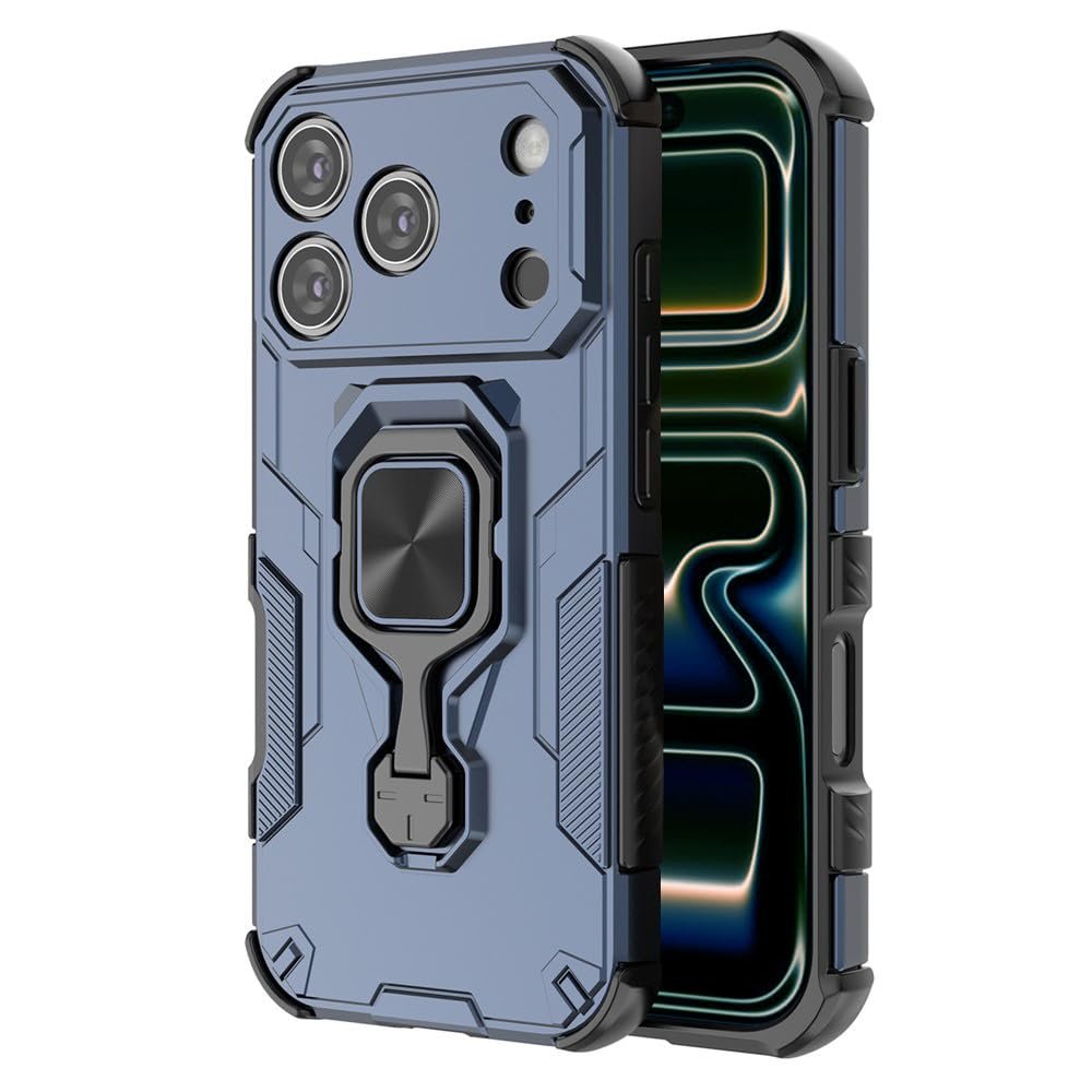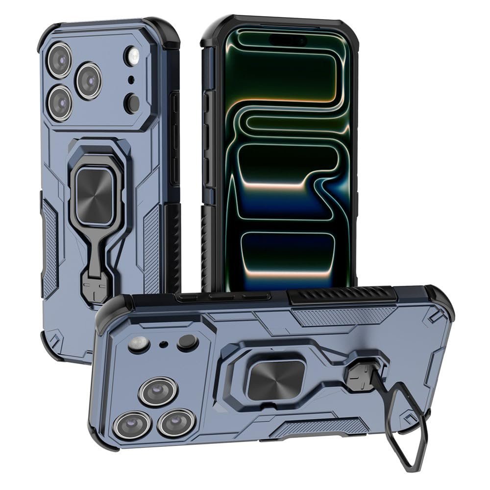 amazon basics Armor Case for Apple iPhone 17 Pro Max Defender Case | Rotating Ring Holder & Kickstand | Military Grade Armor | 360 Degree Protection Back Cover for Apple iPhone 17 Pro Max (Blue)
