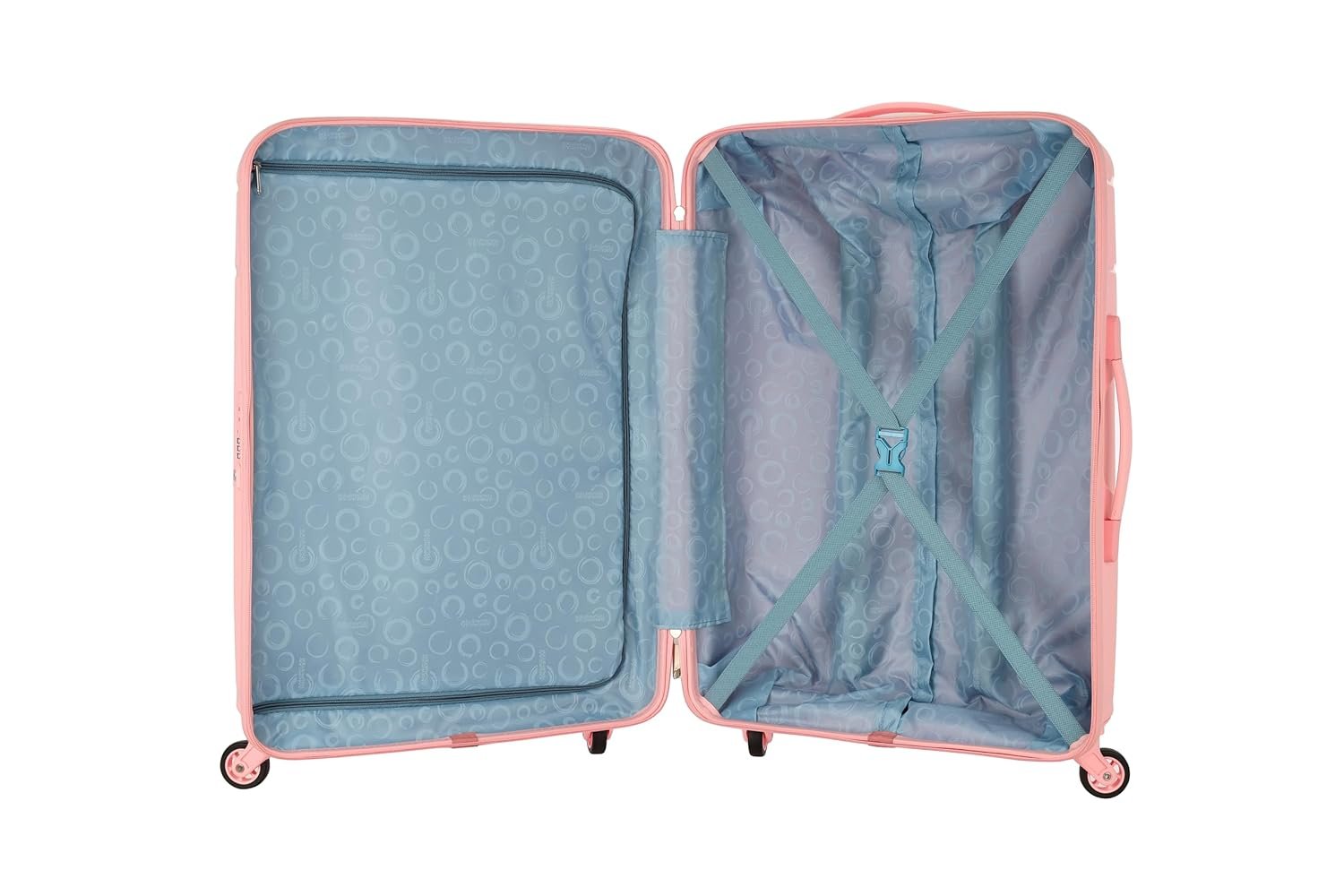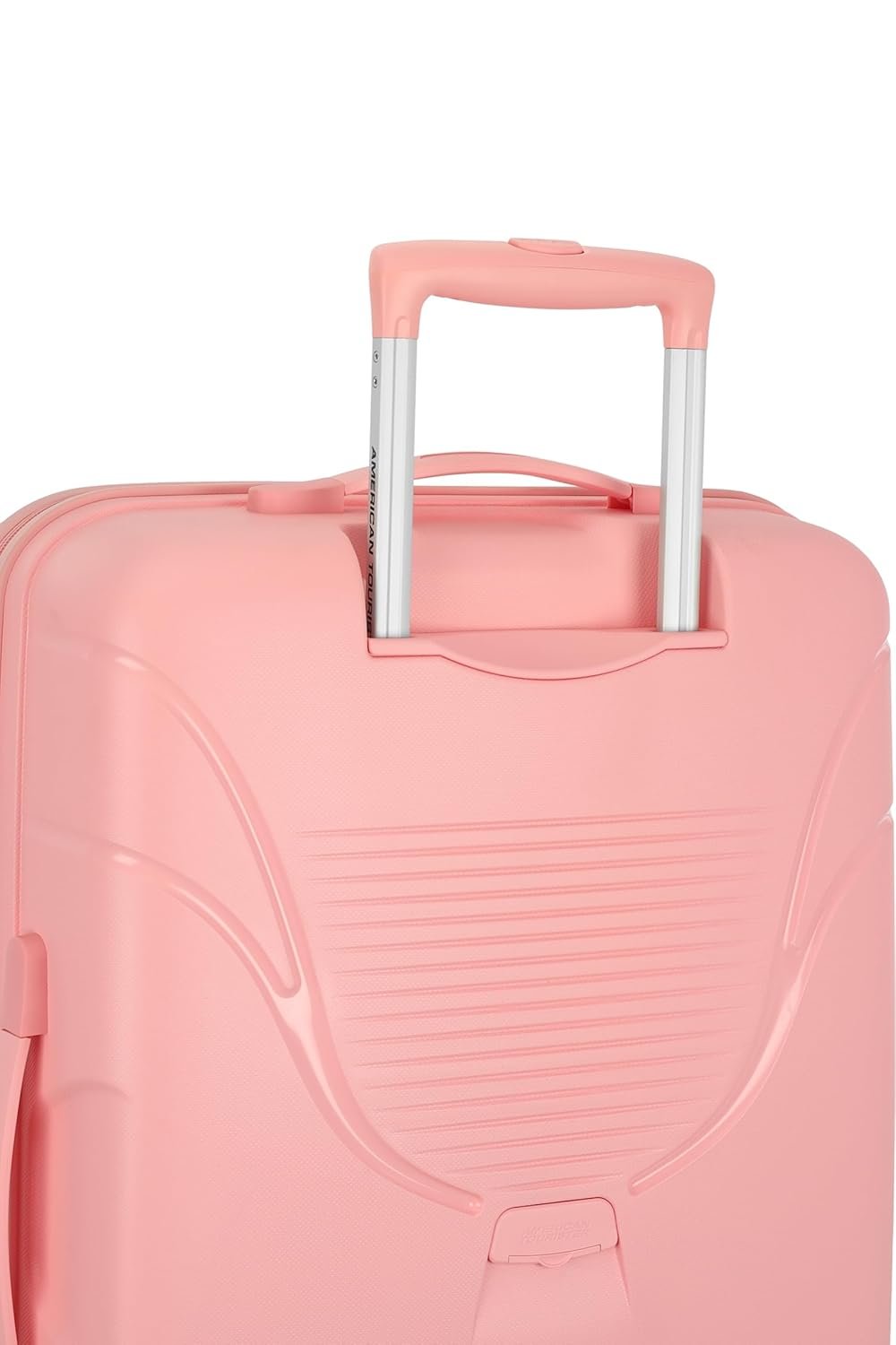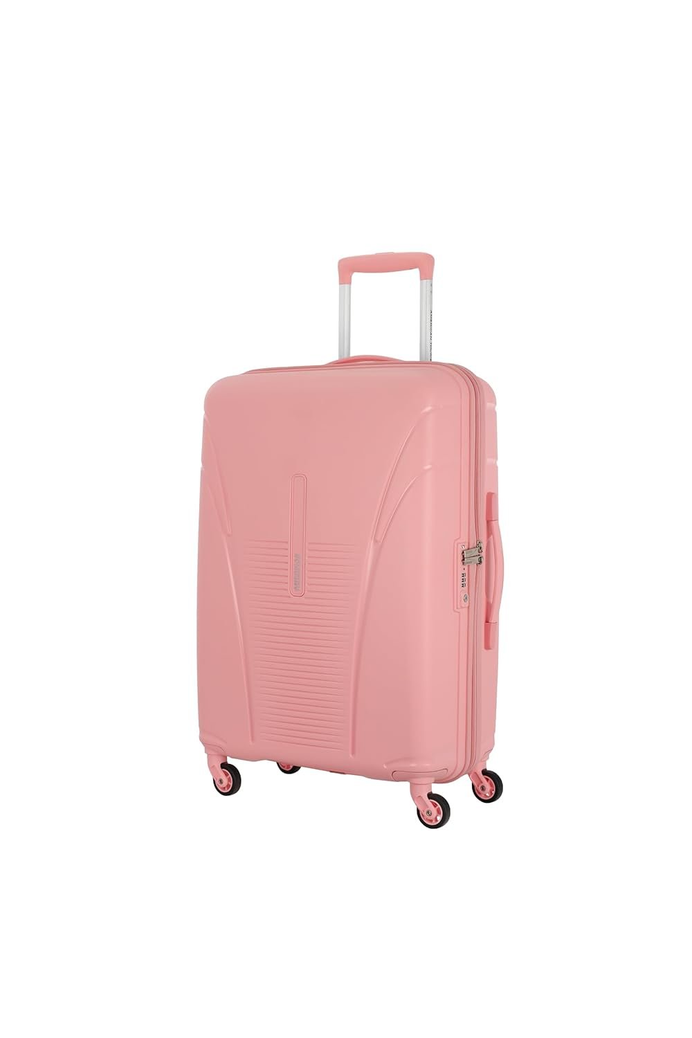 The American TouristerIvy Spinner 77cm cabin bag in pale pink fuses lightweight hardshell strength with sleek fashion appeal. Equipped with a secure TSA lock, spinner wheels for fluid movement, and a thoughtfully organized interior, its perfectly suited for short journeys. It balances everyday resilience with visual flairideal for frequent or style-conscious travelers.
