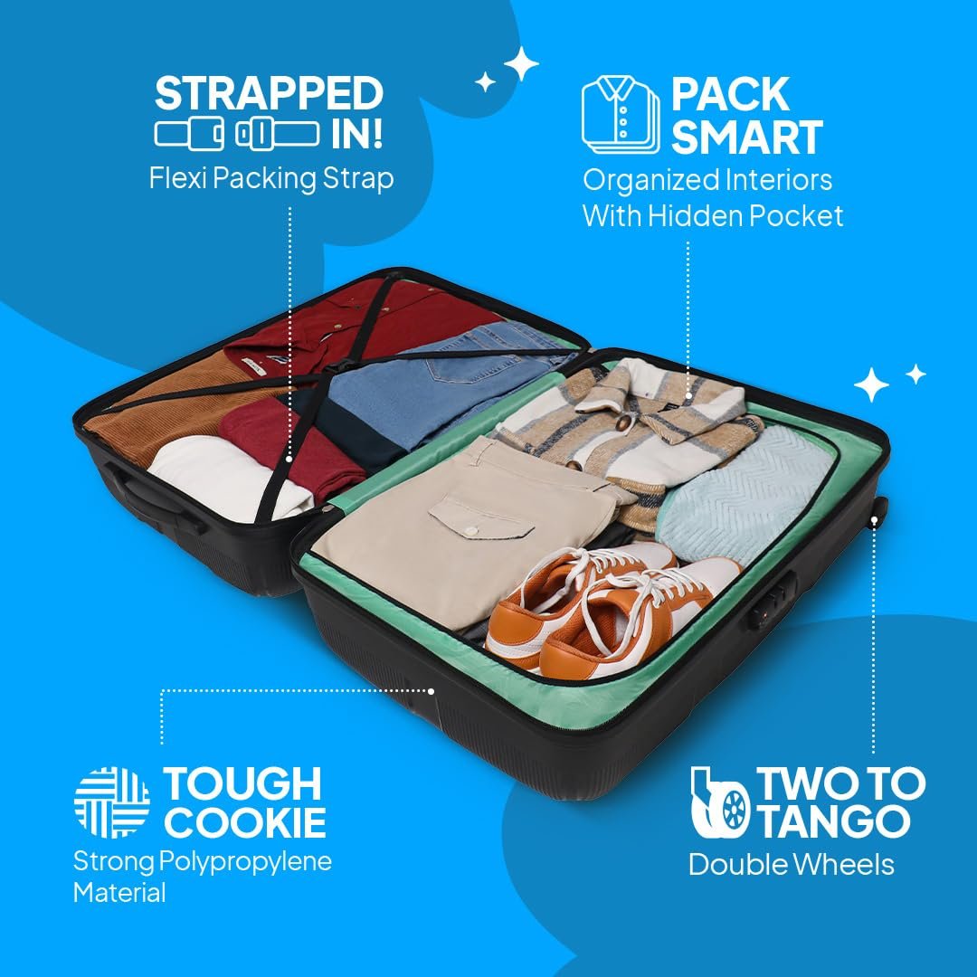 • Strap It, Pack It: Separate, organize and fasten all your belongings with the Flexi Packing Strap. Make the most of our spacious interiors and ensure your belongings don’t shuffle inside.