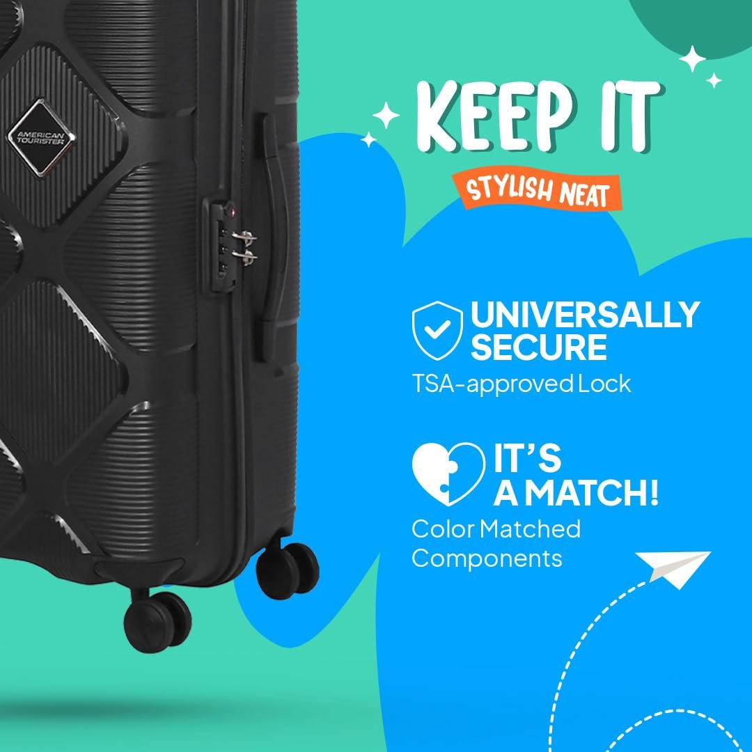 Be the first to review “American Tourister Large Instavibe, 79 CM Trolley Bag for Travel Polypropelene Suitcase with Mounted TSA Lock, Double Wheels, Flexi Packing Straps, and Side Hooks for Men & Women – Black”
