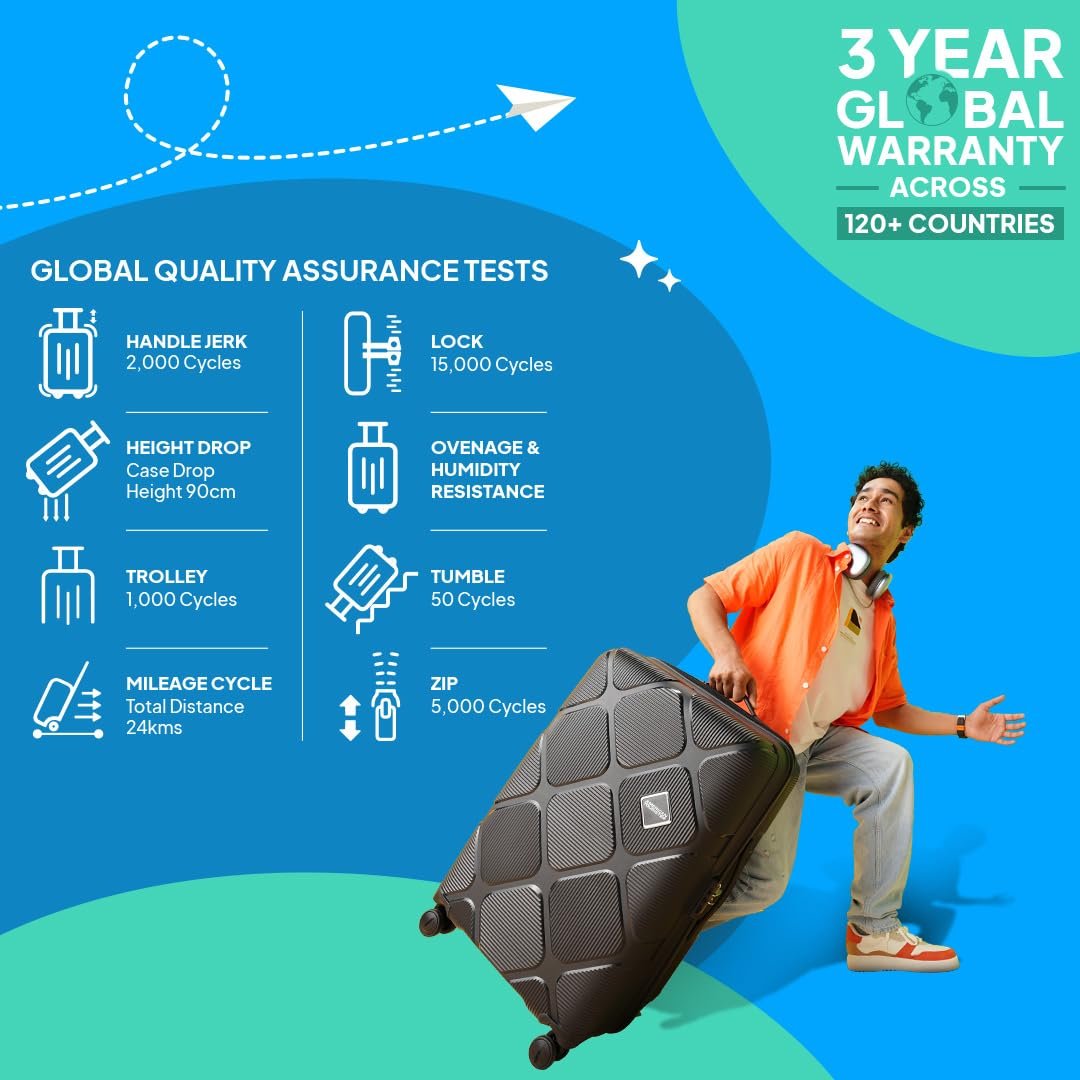 • Rugged Resilience: The shell is made of polypropylene material that is dent-resistant, withstanding the roughest handling and toughest journeys.