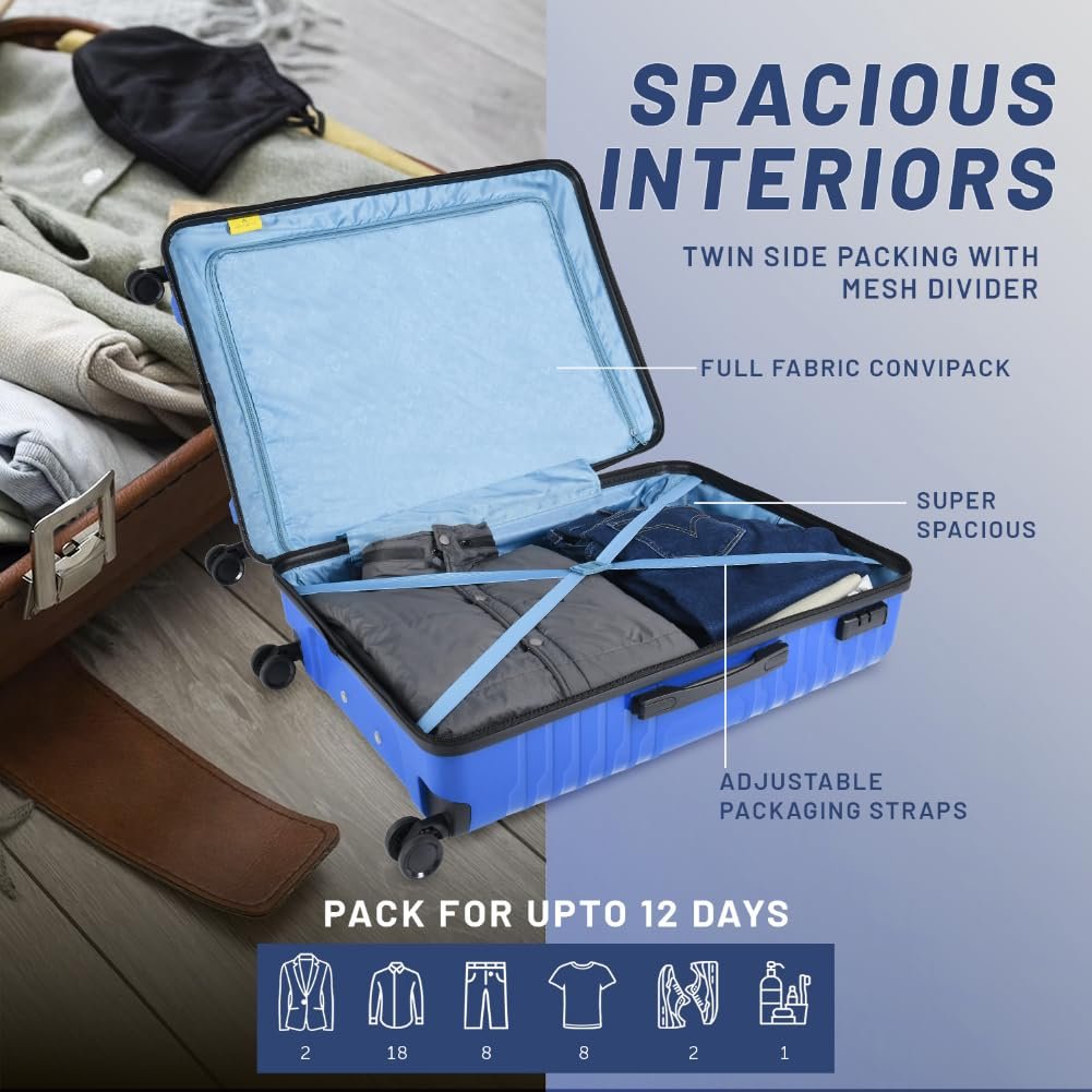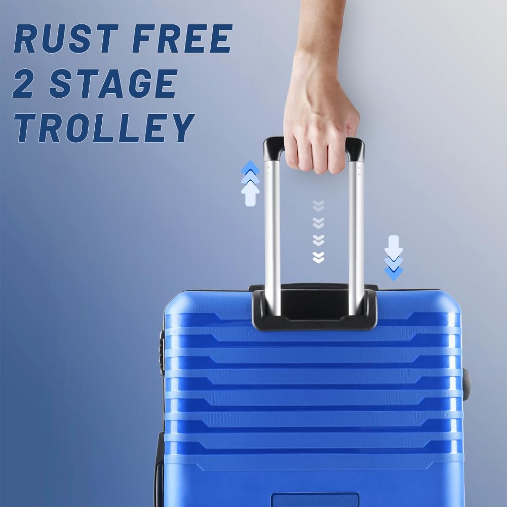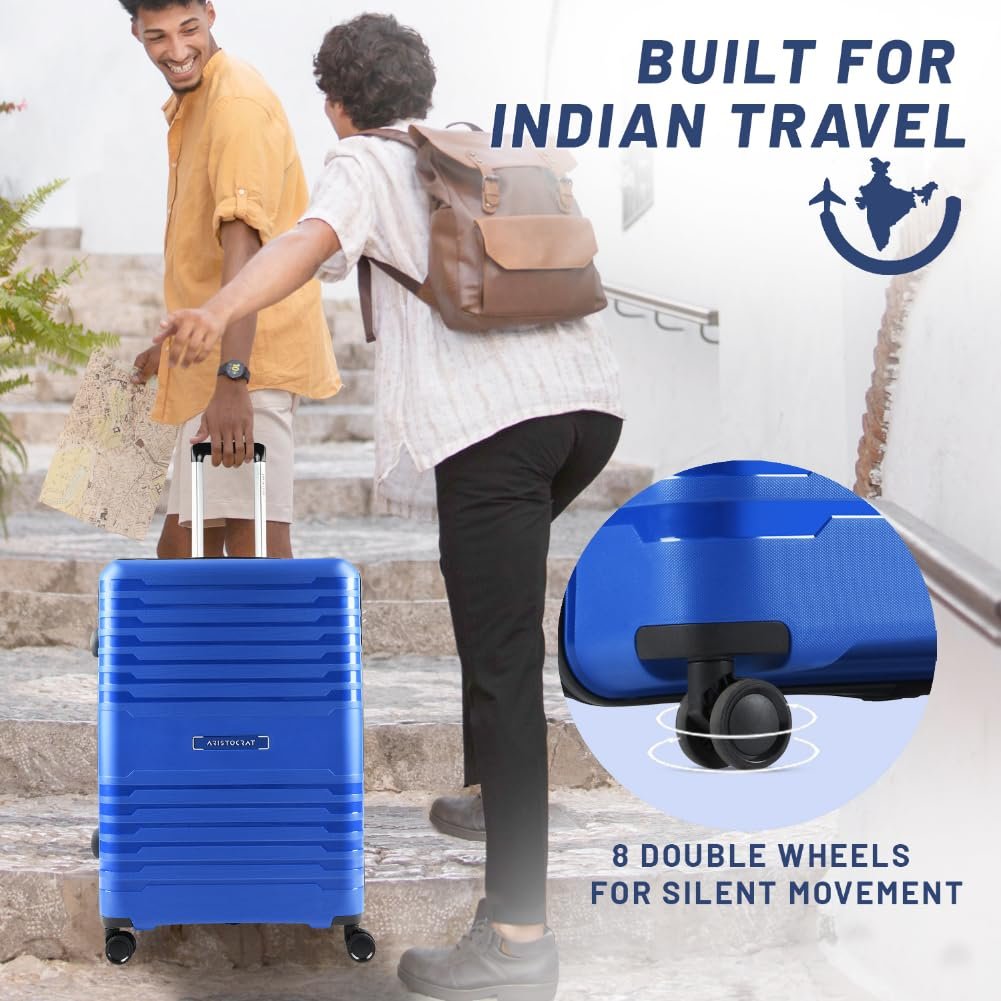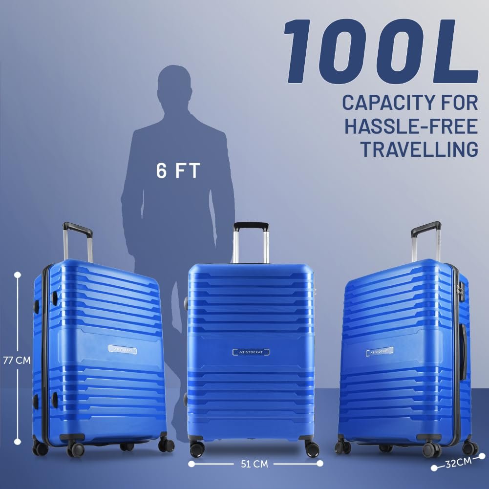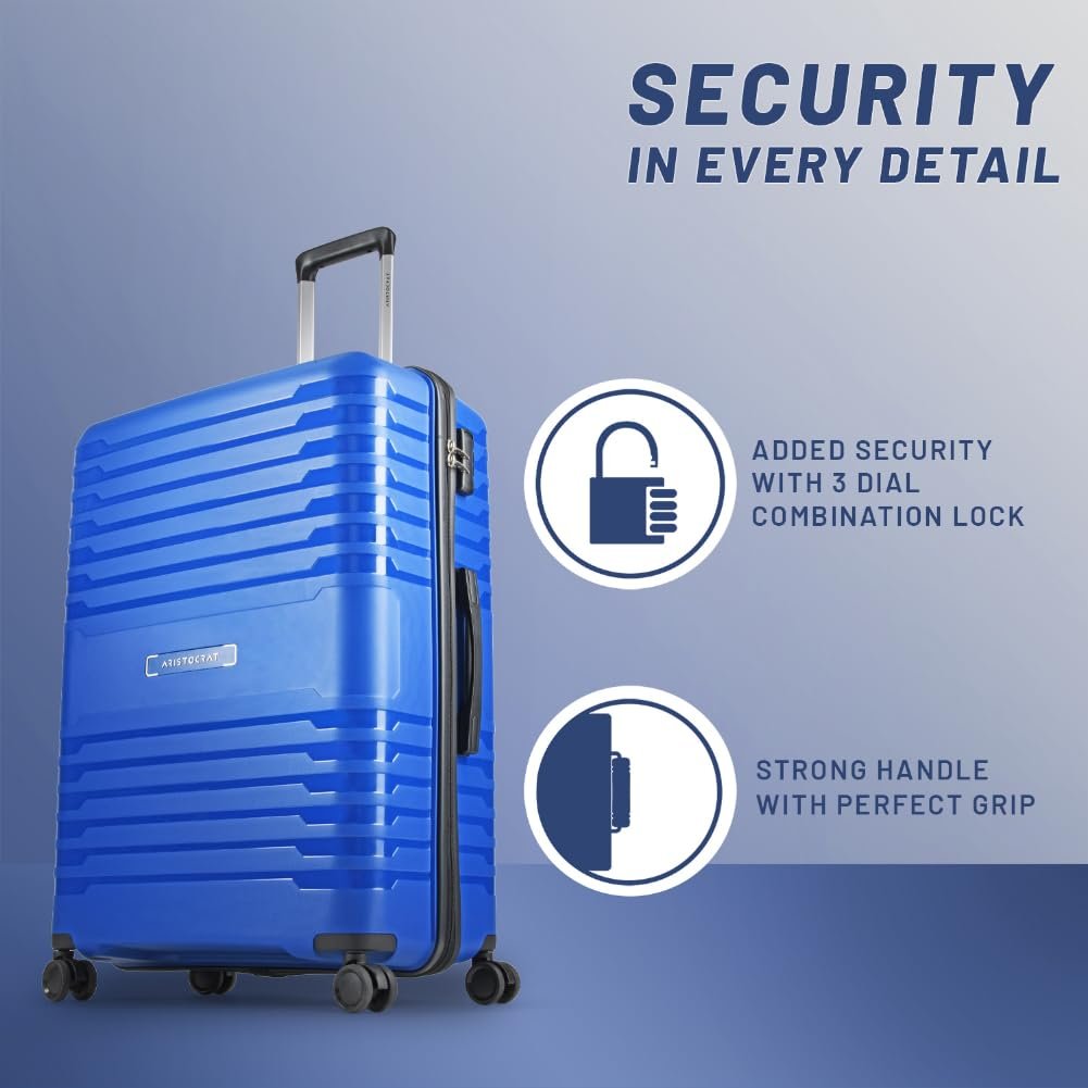 Aristocrat Harbour Cabin Trolley Bag 76 cm | Large | Polypropylene Hardshell Sided Luggage | Smooth 8-Wheel Suitcase | Combination Lock with Sturdy Zipper | 7-Year Warranty – Unisex (Blue)