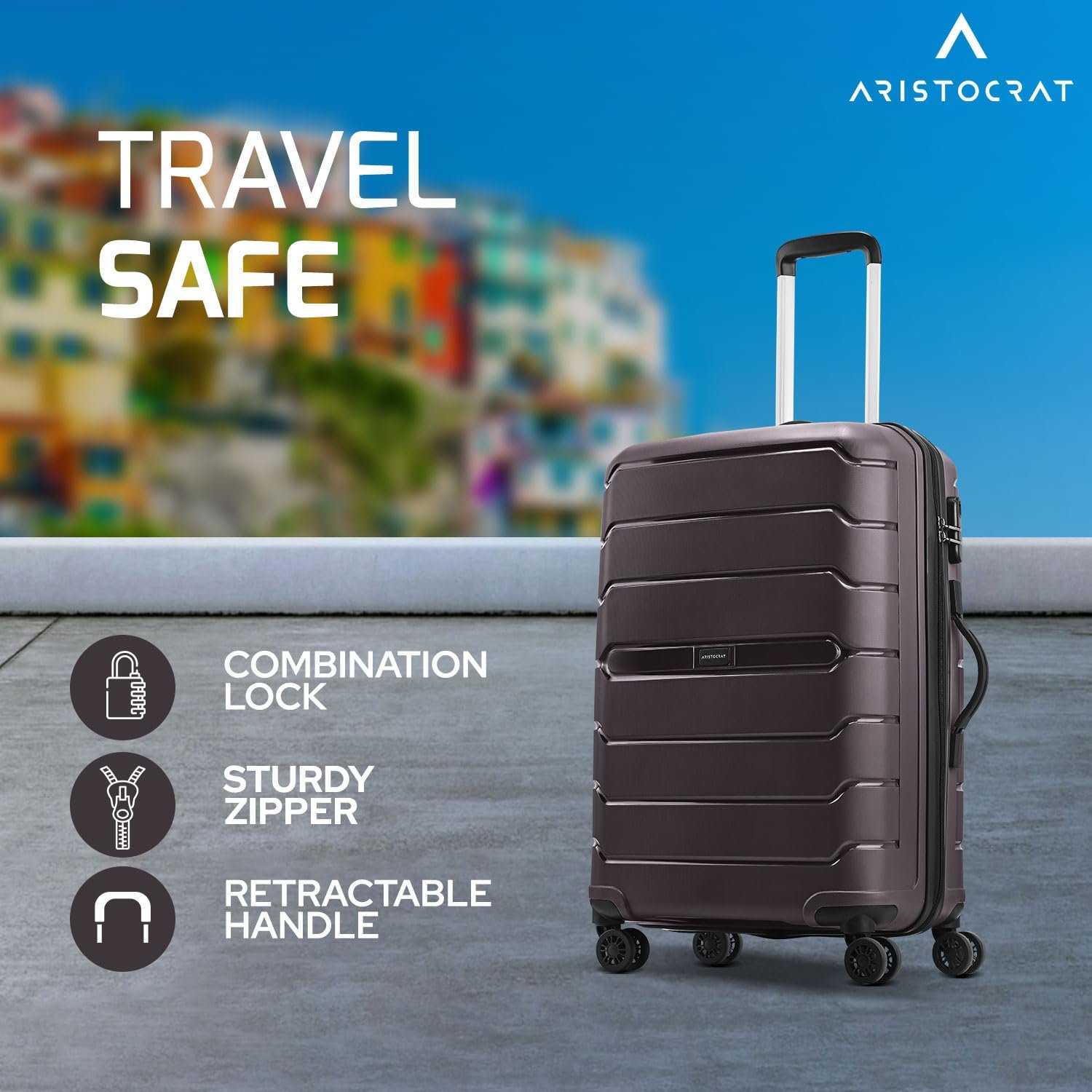 The Aristocrat Liberty is made for the bold traveler. Crafted from durable polypropylene (PP), this sleek 8-wheeled trolley glides effortlessly and turns heads at every terminal. With a secure combination lock and robust zipper, your belongings stay protected throughout your journey. Plus, a 5-year warranty offers added peace of mind. Designed to meet all your travel needs, the Aristocrat Liberty is the perfect blend of style, strength, and convenienceeverything you’d expect from a premium hard case trolley bag. Travel smart. Travel bold. Travel with Aristocrat.