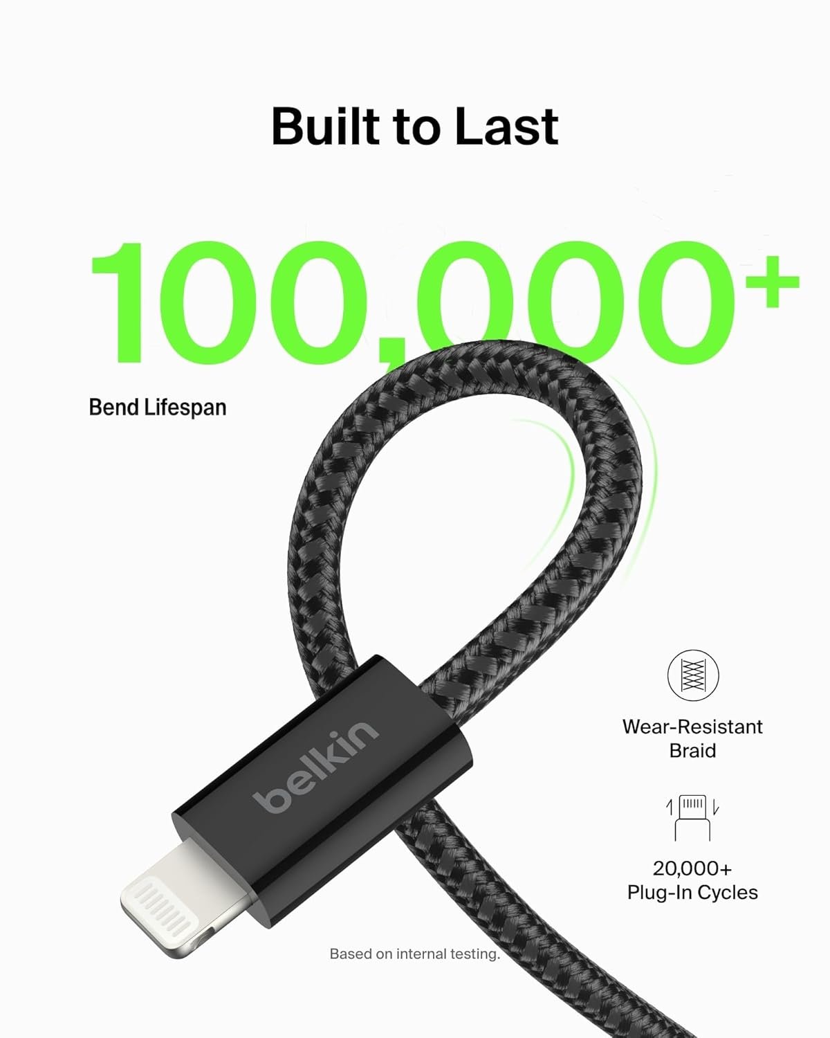 - UNPARALLELED DURABILITY: The Belkin BoostCharge Nylon Braided Cable has been tested to survive over 10,000+ bends, 10x more durable than a typical PVC iPhone cable