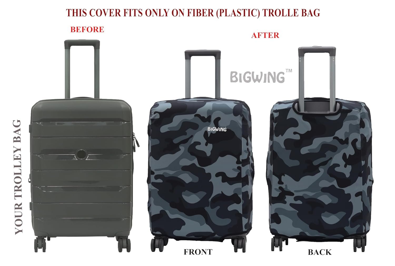 Introducing BIGWING Polyester Fabric Recyclable Eco-Friendly Trolley Bag Cover by ASPIRE ENTERPRISE! Travel In Style While Protecting Your Luggage With Our Durable, Stretchable, And Washable Trolley Bag Covers. Crafted From Premium Four-Way Stretchable Polyester-Spandex Mix Fabric, These Covers Shield Your Bags From Dust, Scratches, And Everyday Wear, Ensuring They Stay In Top Condition. Proudly Delivering a MADE IN INDIA Product, We Strive To Offer The Best Quality At The Best Price For Our Valued Customers. Dress Up Your Luggage And Travel With Confidence!