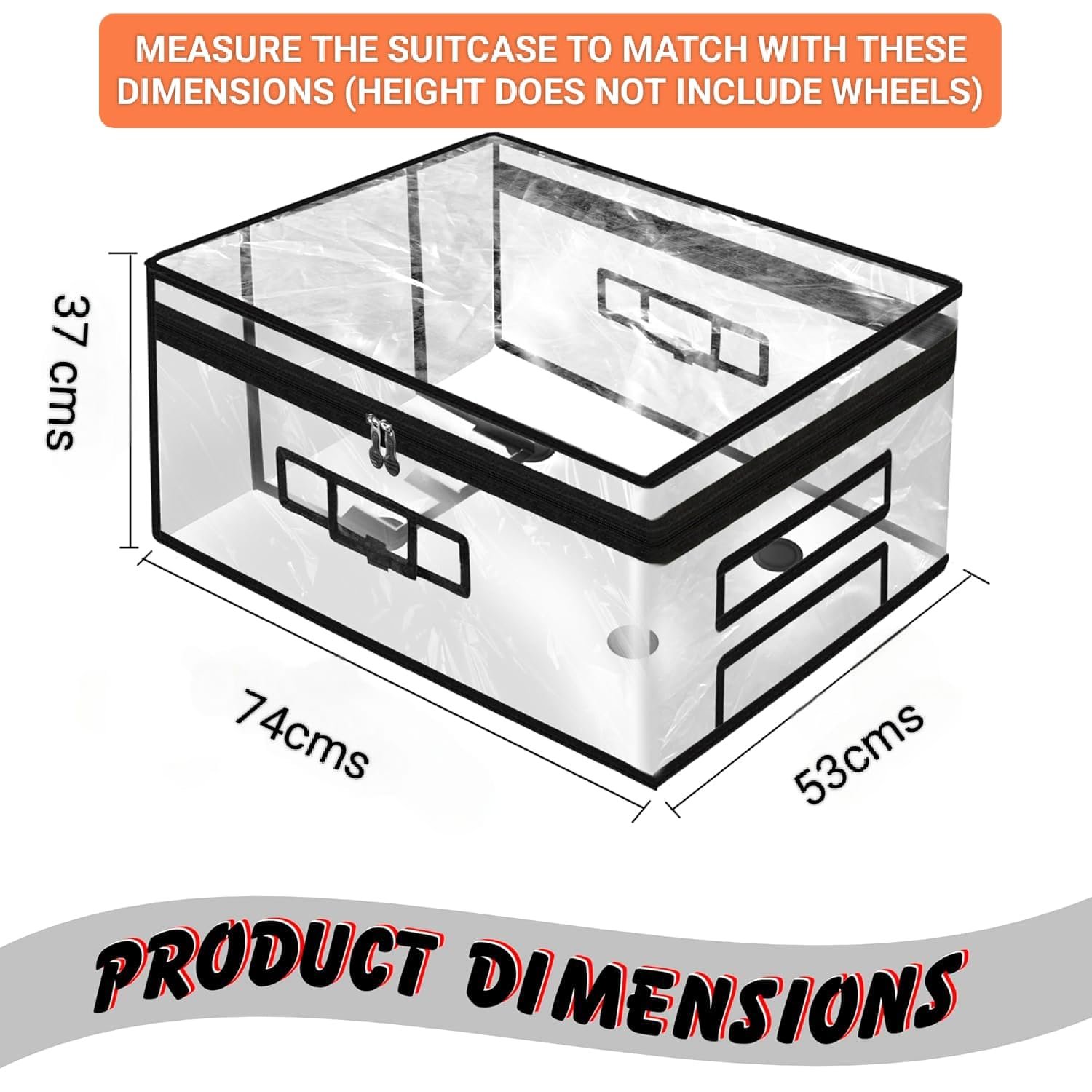 - Transparent Design: The cover is completely transparent, allowing your suitcase’s design and color to remain visible while still providing full protection. Multiple Sizes Available: Available in a range of sizes, from 18 inches to 32 inches, ensuring a perfect fit for various suitcase dimensions.