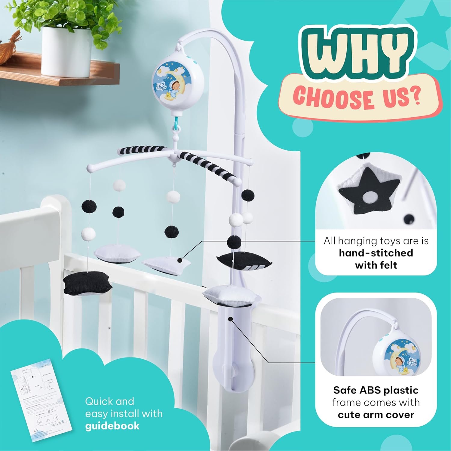 - 👍 1-YEAR WARRANTY – Add this stimulating baby mobile to your cart today and create joyful moments for your little one. If any part gets damaged within 1 year, we’ll send you a free replacement—no questions asked. Shop with confidence, knowing your baby’s safety and our product quality are guaranteed.