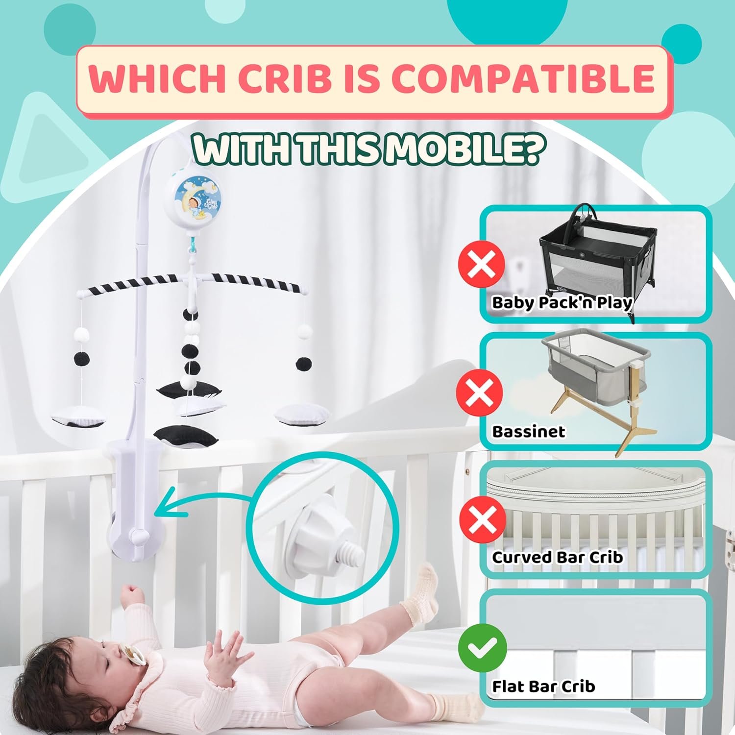 - ⚠️ WARNING – This is not a bassinet mobile and may not be compatible with your bassinet. Please carefully consider before purchasing for use with a bassinet.