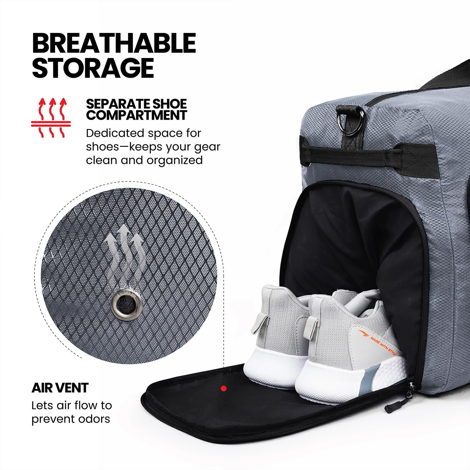 - EVERYTHING ORGANIZED: A shoe compartment and 4 outer zippered pockets for easy access to essentials