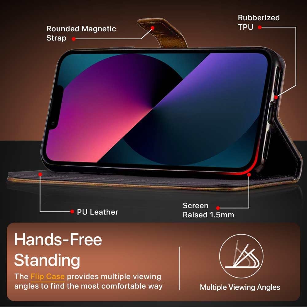 - Compatible Devices: Hand-stitched Dual Design flip cover for iPhone 13.