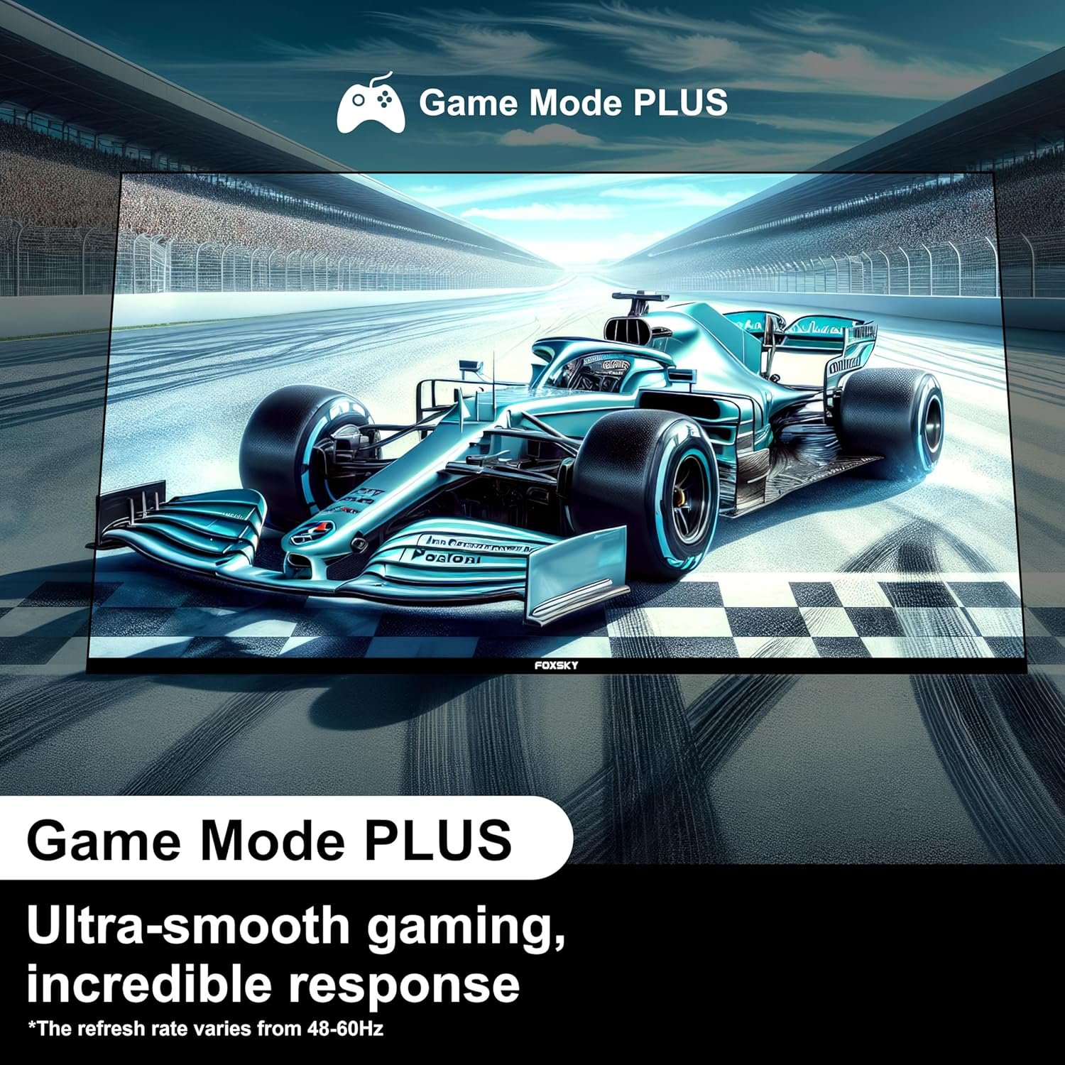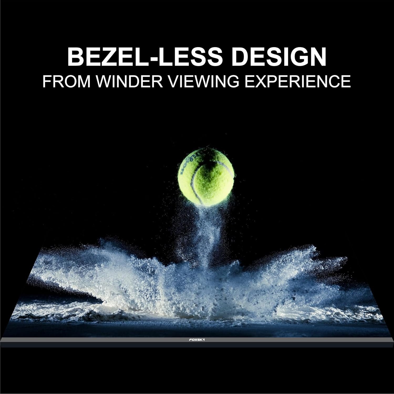 Bring sophistication and style to your living space with the Foxsky Frameless Full-Screen Design. Crafted with precision, the ultra-slim bezels create an edge-to-edge viewing experience, maximizing the screen area for a more immersive feel. The sturdy and stylish stand adds balance and a modern touch, making it a perfect fit for any home décor.
