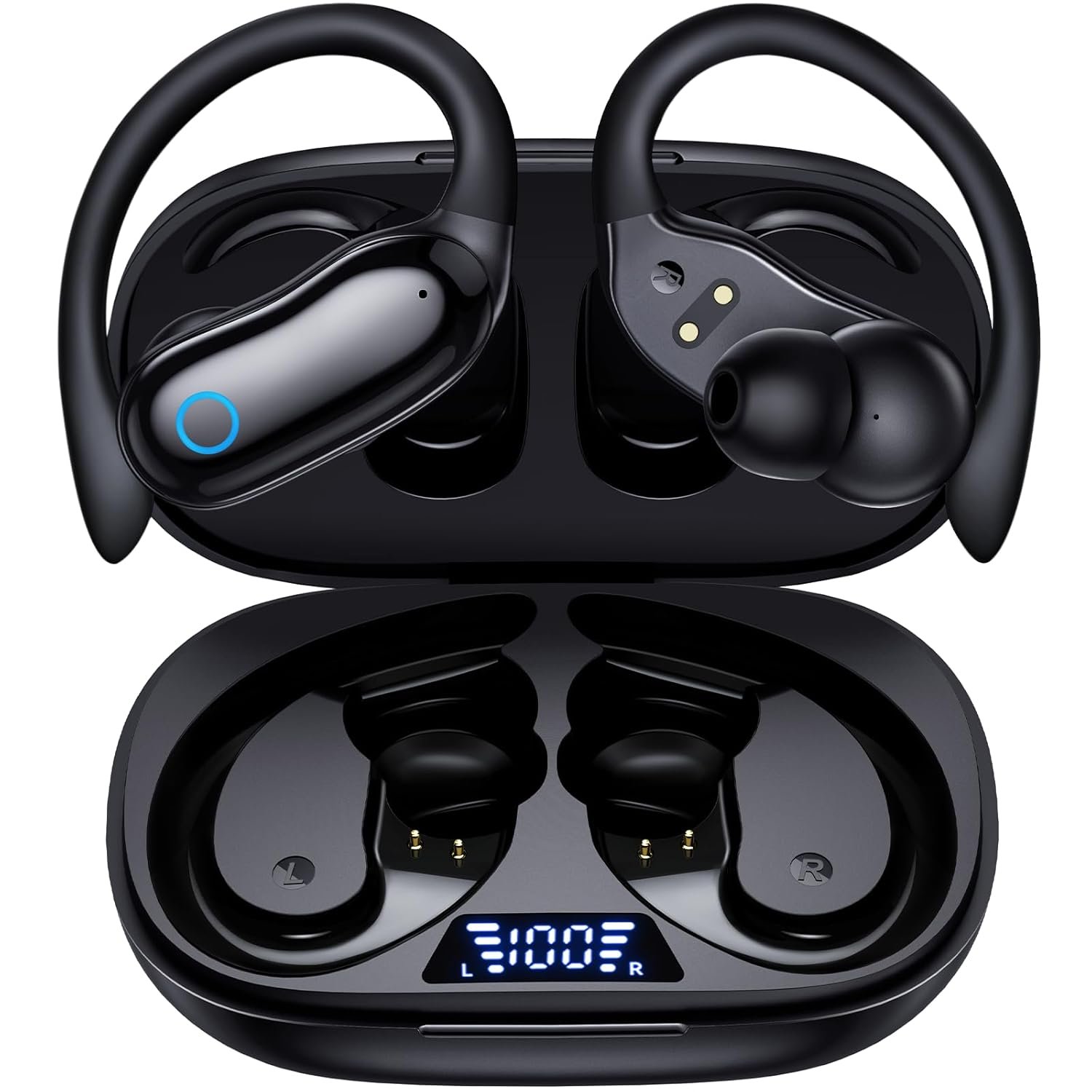 - Huge Battery Life with Power Display Charging Case: On single fully charge, our Bluetooth earbuds last up to 8 hours. With portable charging case, it provides up to 96 hrs of continuous playback, ensuring that your music never has to end. The dual led display easily monitors the real-time battery levels of both the case and wireless earbuds on the go. Additionally, the Type-C fast charging capability makes recharging the sport headphones a breeze and let you dive back into your groove.