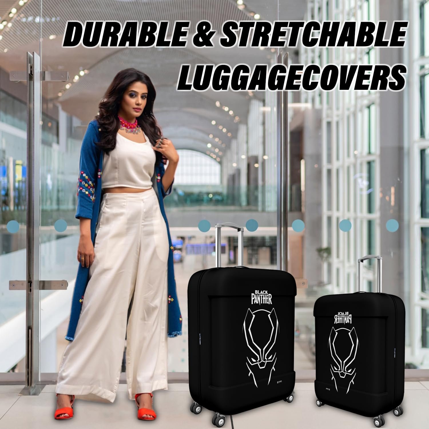 - 💦 PACKAGE CONTAIN : 1 Piece Marvel Black Panther Print Luggage Cover|Large|MATERIAL : Polyester|PACKAGE DIMENSION : 75 cm x 45 cm x 30 cm
