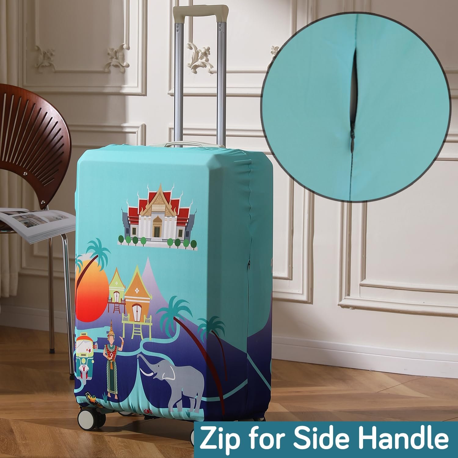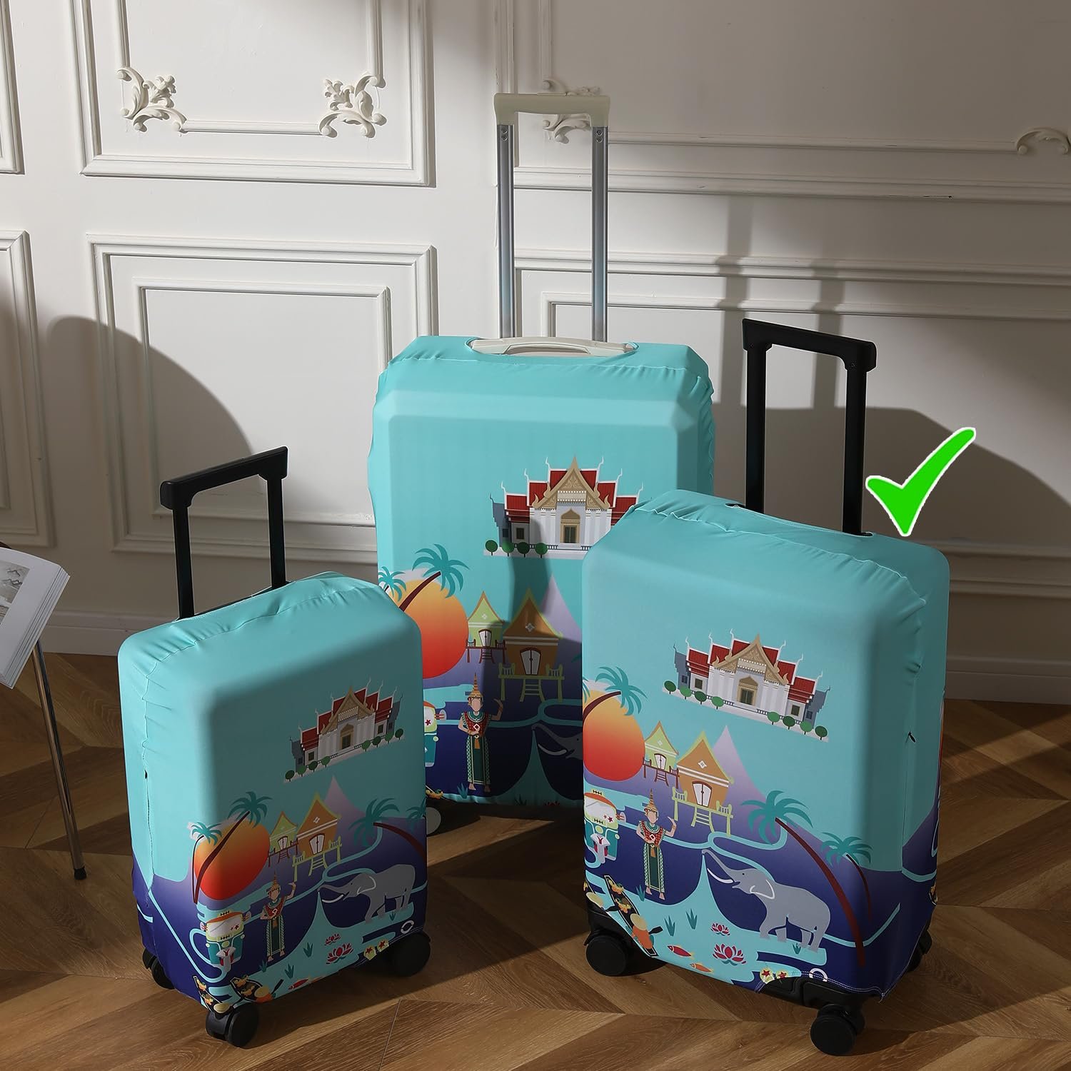 - HOKIPO luggage cover for trolley suitcase. Good quality 180gsm stretchable fabric. Digital prints. 100% machine washable. Colors won’t fade
