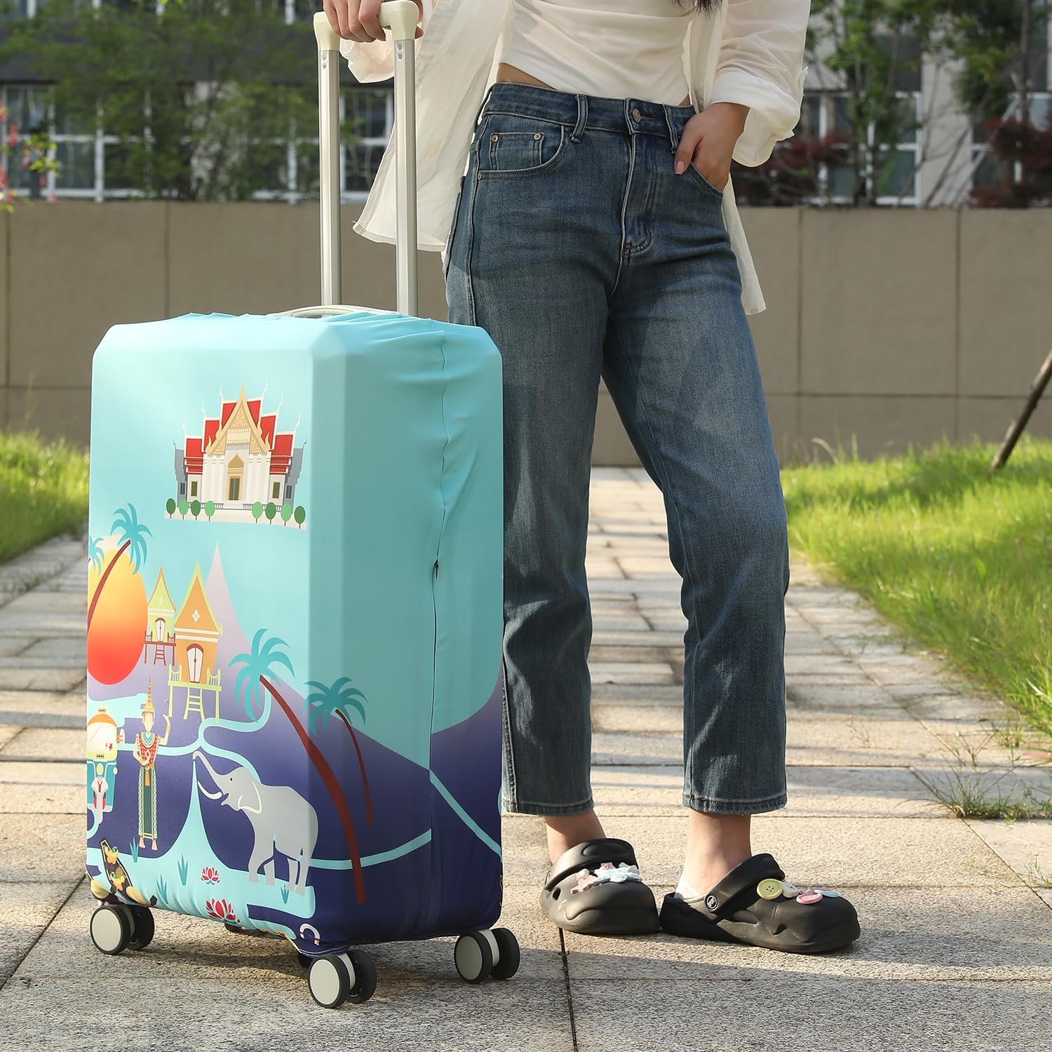 - Now travel hassle free and in style. Give a new look to your old suitcase or protect your expensive brand new suitcase. Also it becomes much easier to identify your luggage. Available in a range of bright digital prints for you to choose from