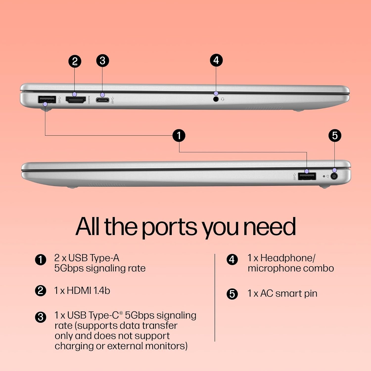 HP 15, 13th Gen Intel Core i5-1334U (8GB DDR4, 512GB SSD), Anti-Glare, Micro-Edge, 15.6/39.6cm, FHD, Silver, 1.59kg, fd0466tu, Intel Iris Xe, FHD Camera w/Privacy Shutter, Backlit Laptop
