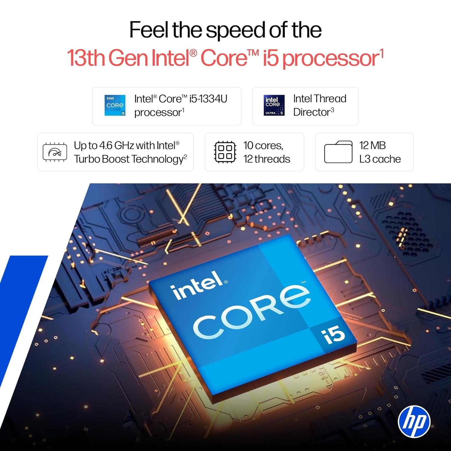 - Processor – Intel Core i5-1334U (up to 4.6 GHz with Intel Turbo Boost Technology, 12 MB L3 cache, 10 cores, 12 threads); Memory – 16 GB DDR4-3200 MT/s (2 x 8 GB); Storage – 512 GB PCIe NVMe M.2 SSD