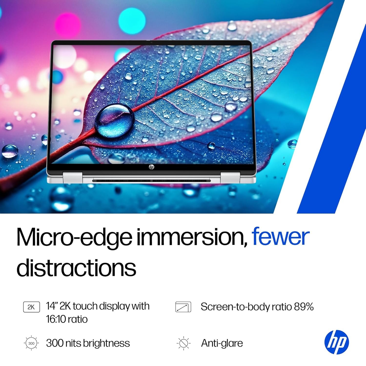 - Display & Graphics: 35.6 cm (14″) diagonal, 2K (1920 x 1200), multitouch-enabled, IPS, edgeto-edge glass, micro-edge, 300 nits, 62.5% sRGB|Graphics: Intel Graphic