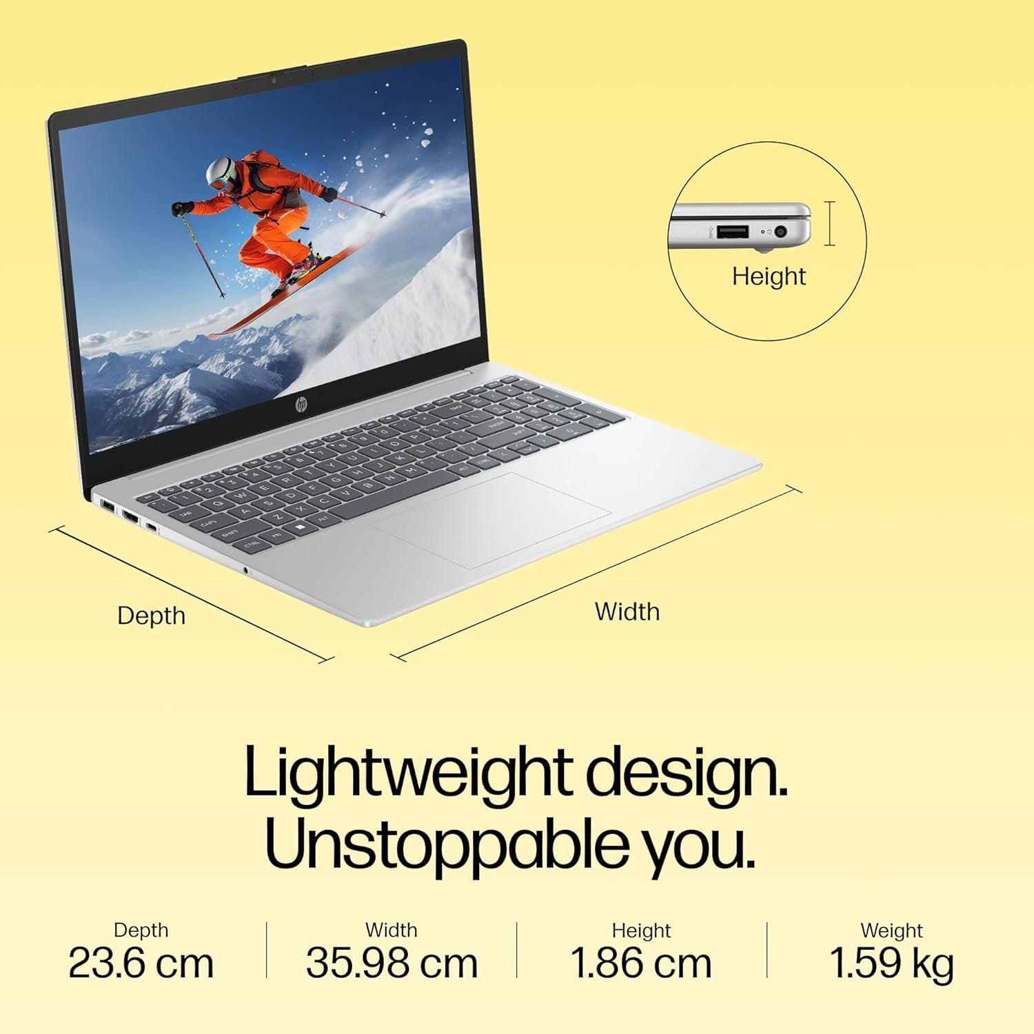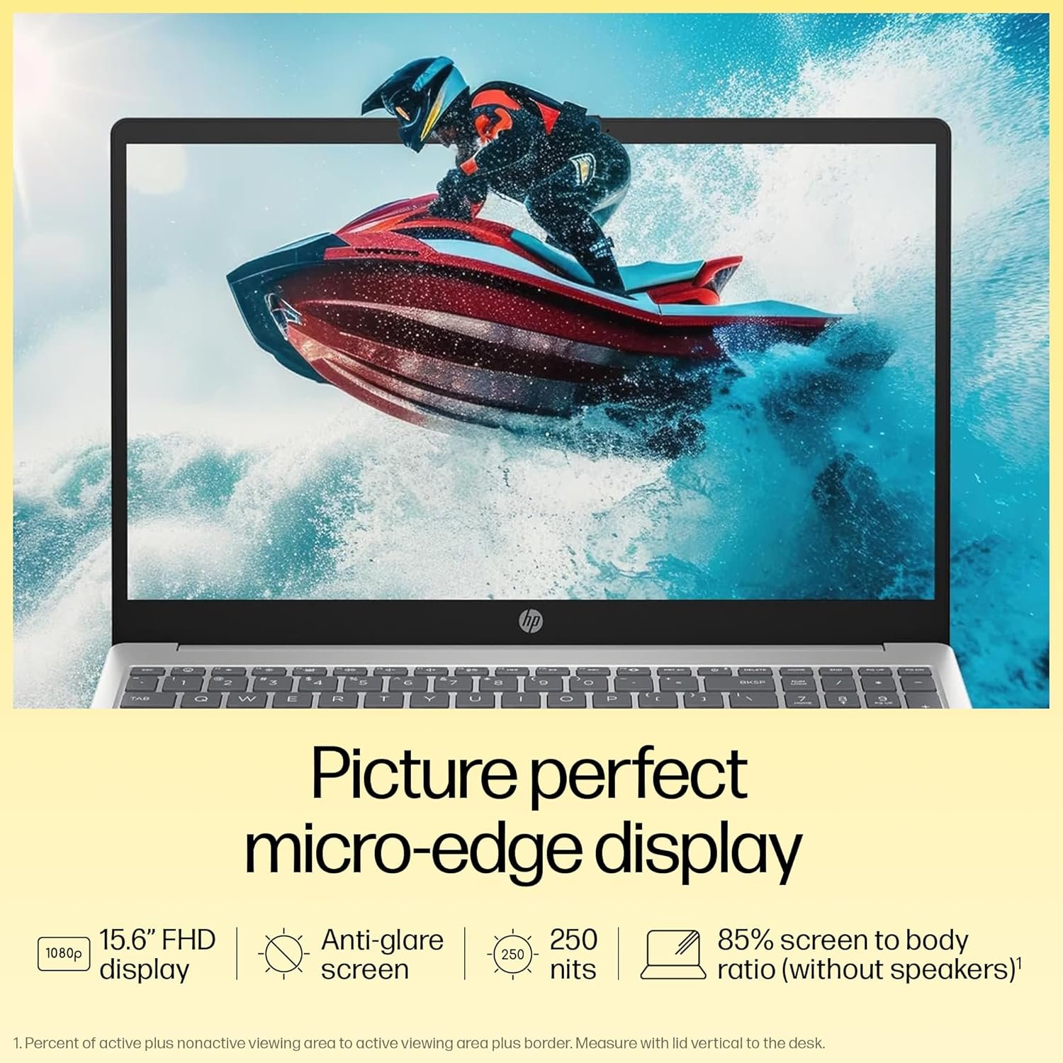 • Display & Graphics: 39.6 cm (15.6″) diagonal, FHD (1920 x 1080), micro-edge, anti-glare, 250 nits, 45% NTSC| Graphics: AMD Radeon Graphics