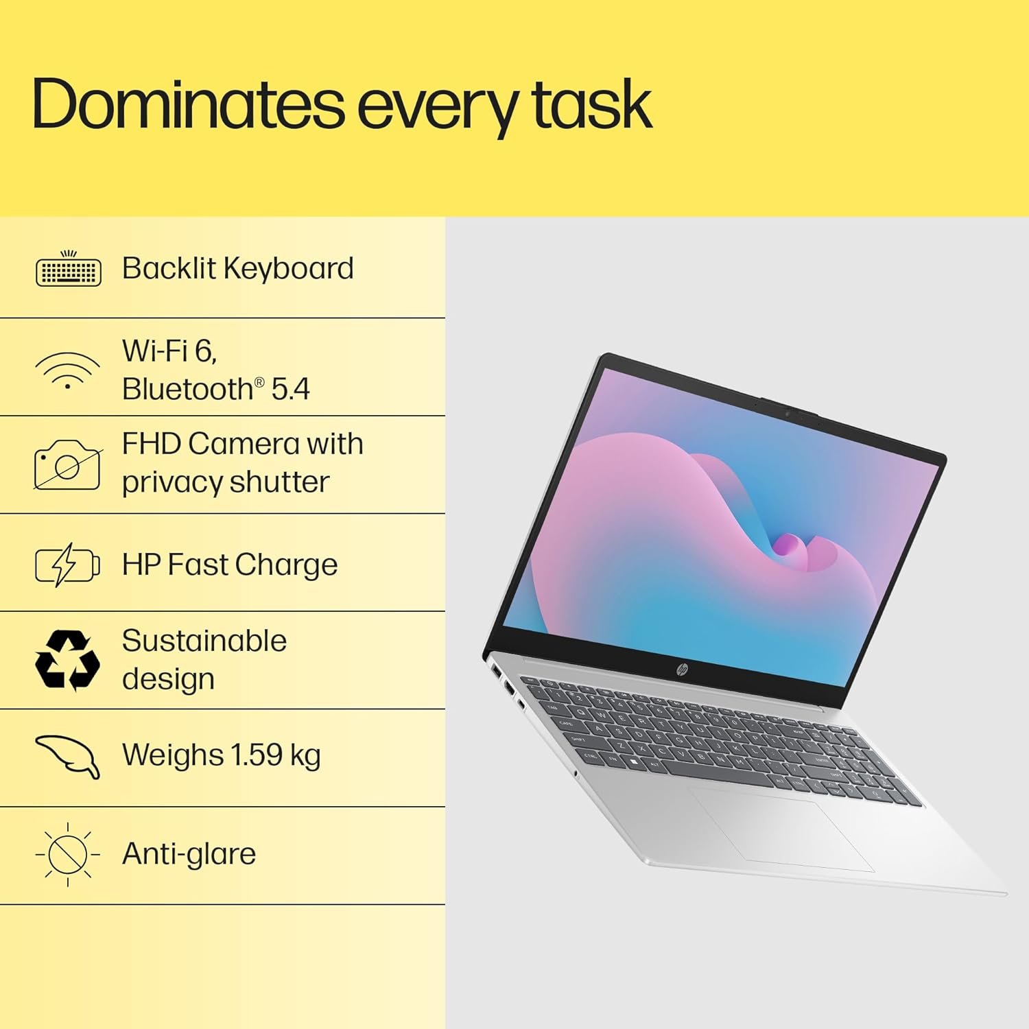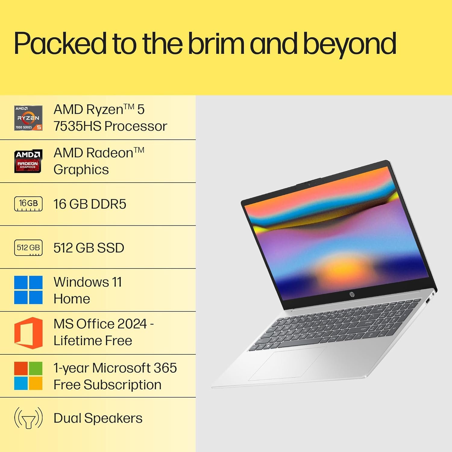 HP Smartchoice 15, AMD Ryzen 5 7535HS (16GB DDR5, 512GB SSD) Anti-Glare, Micro-Edge, FHD,15.6/39.6cm, Win11, M365 Basic(1yr)* Office24, Silver, 1.6kg, fc1039AU, FHD Camera w/Shutter, Backlit Laptop
