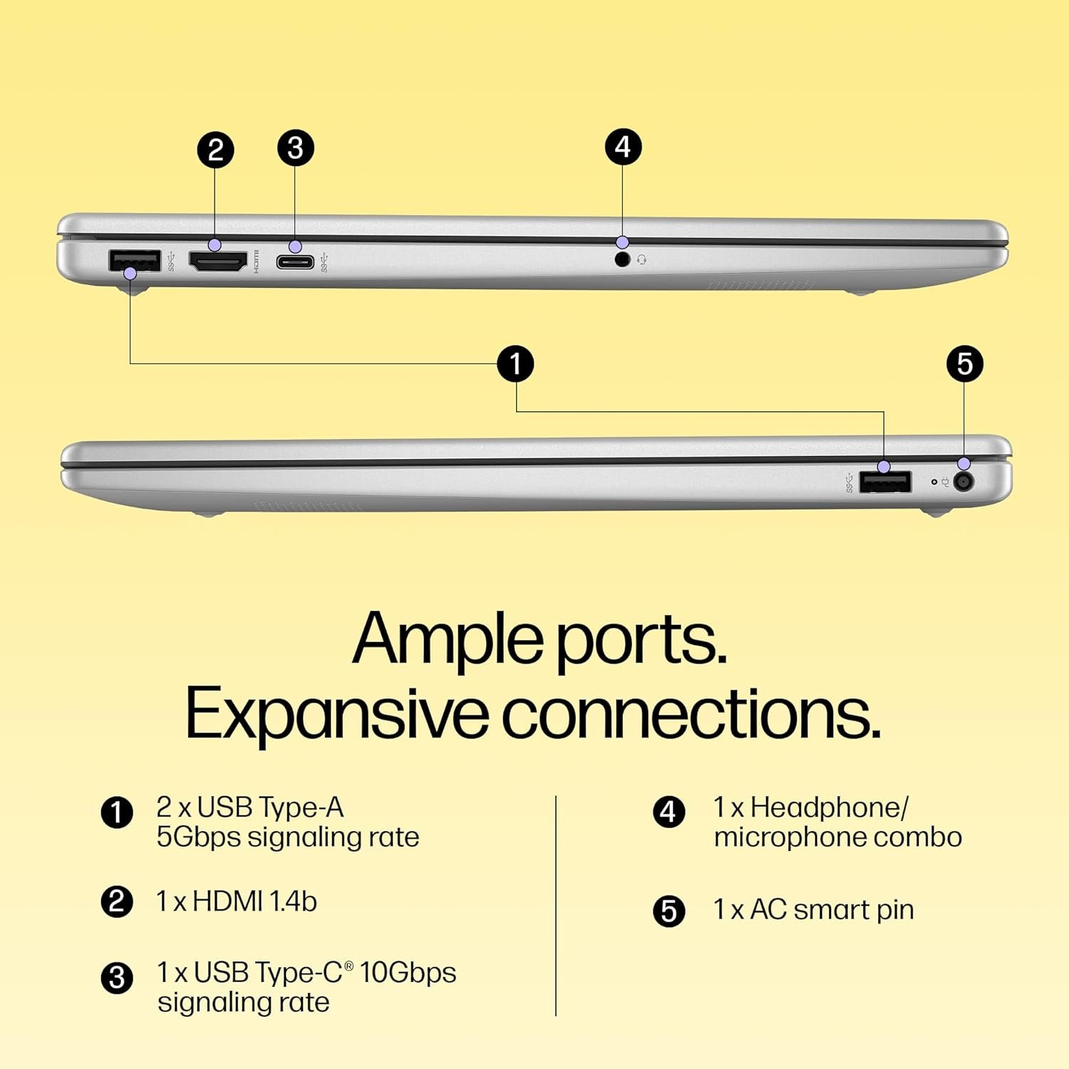 • Ports & Connectivity : 1 USB Type-C 10Gbps signaling rate (USB Power Delivery, DisplayPort 1.4, HP Sleep and Charge); 2 USB Type-A 5Gbps signaling rate; 1 AC smart pin; 1 HDMI-out 1.4b; 1 headphone/microphone combo| Connectivity: Realtek Wi-Fi 6 (2×2) and Bluetooth 5.3 wireless card (supporting gigabit data rate)