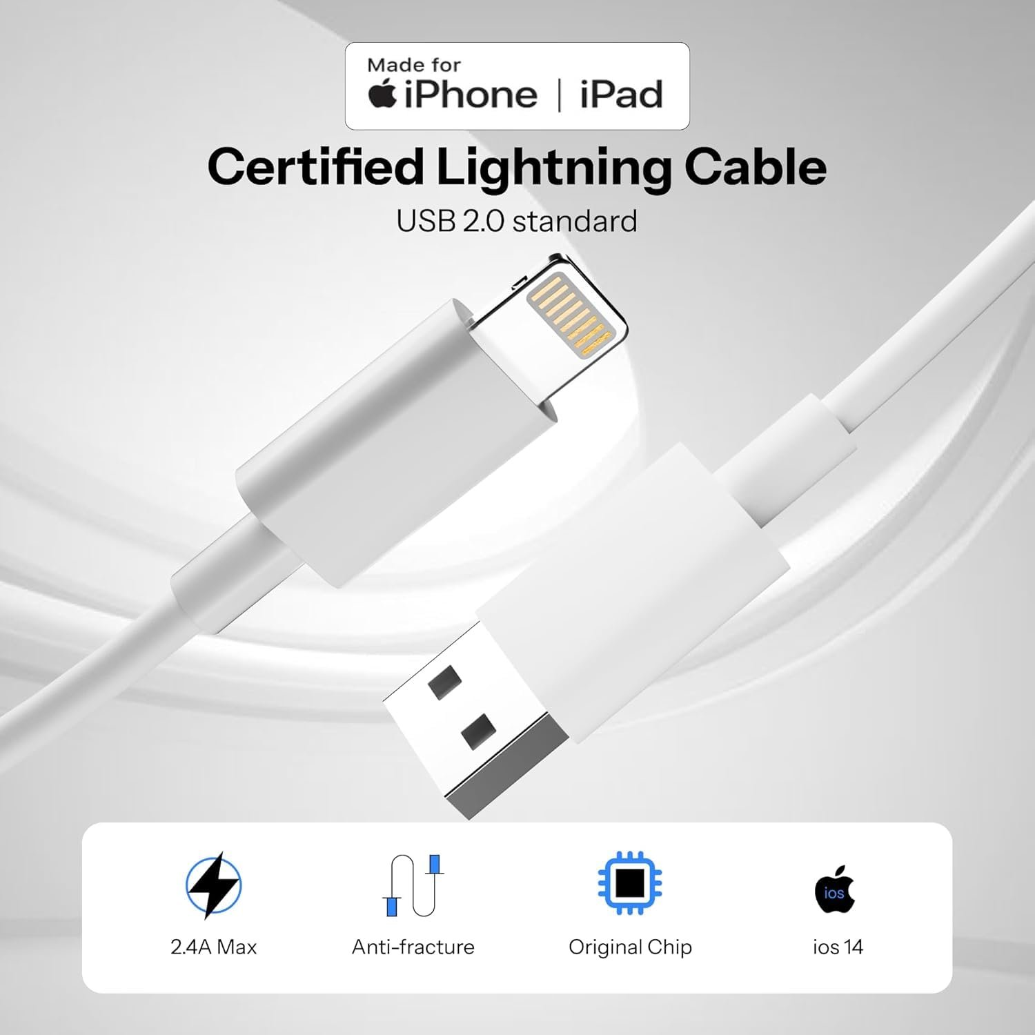 - [Super Durability and Flexibility]:The iphone charging cables are made of top-rated material and coated with premium TPE, which last 4X longer than other iphone charger cord and proven to withstand over 25,000 bends in strict laboratory tests.