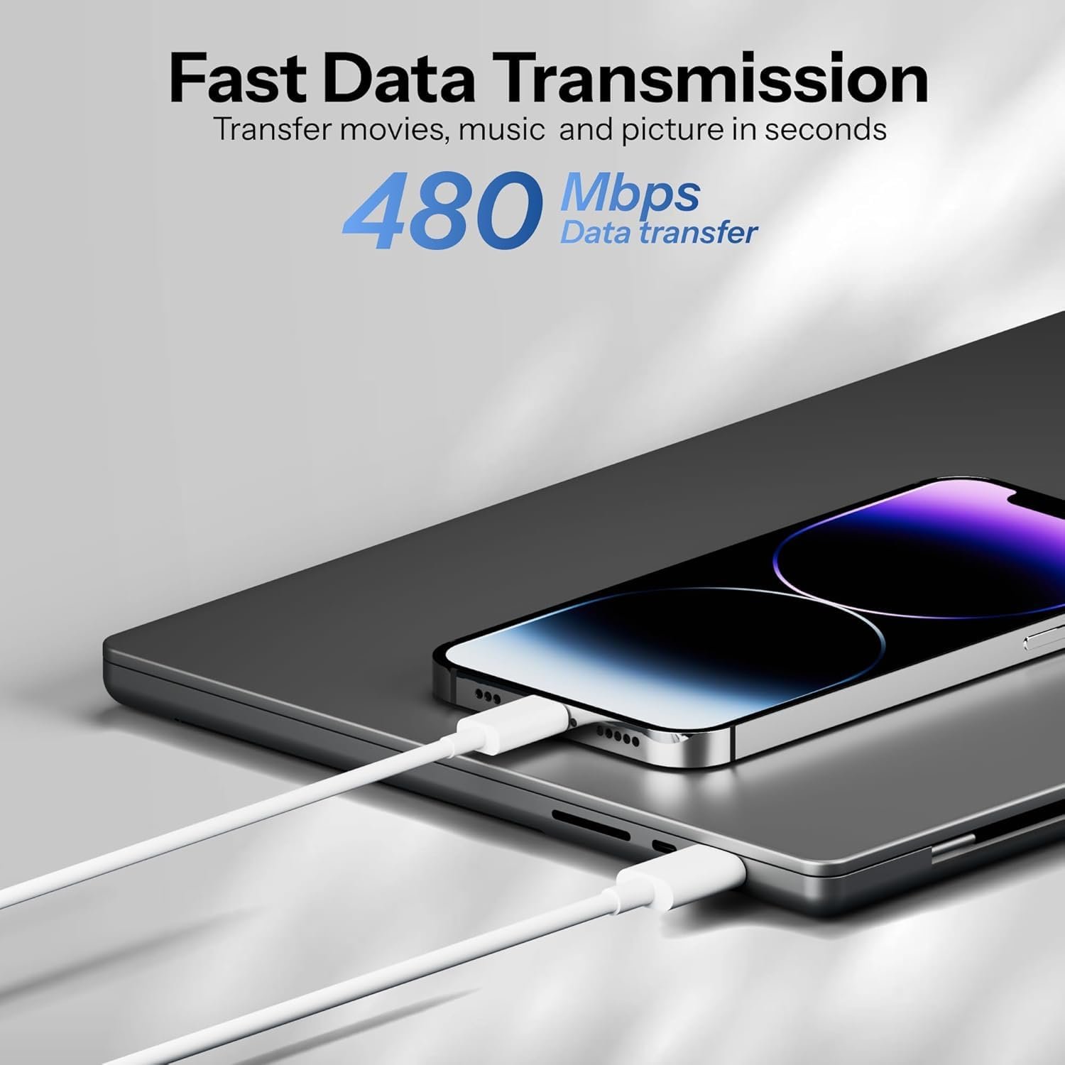 - 【Power Delivery Fast Charging & SYNC】: USB-C to lightning cable supports high-speed power delivery fast Charging, can charge the iPhone 13 up to 50% in 25mins. They also support data transfer rate up to 480Mbps,which can easily transfer music, photos and files between iPhone and laptop or desktop computer in seconds.(Note:You need to use 20W or above USB-C Power Adapter to achieve Power Delivery Fast Charging