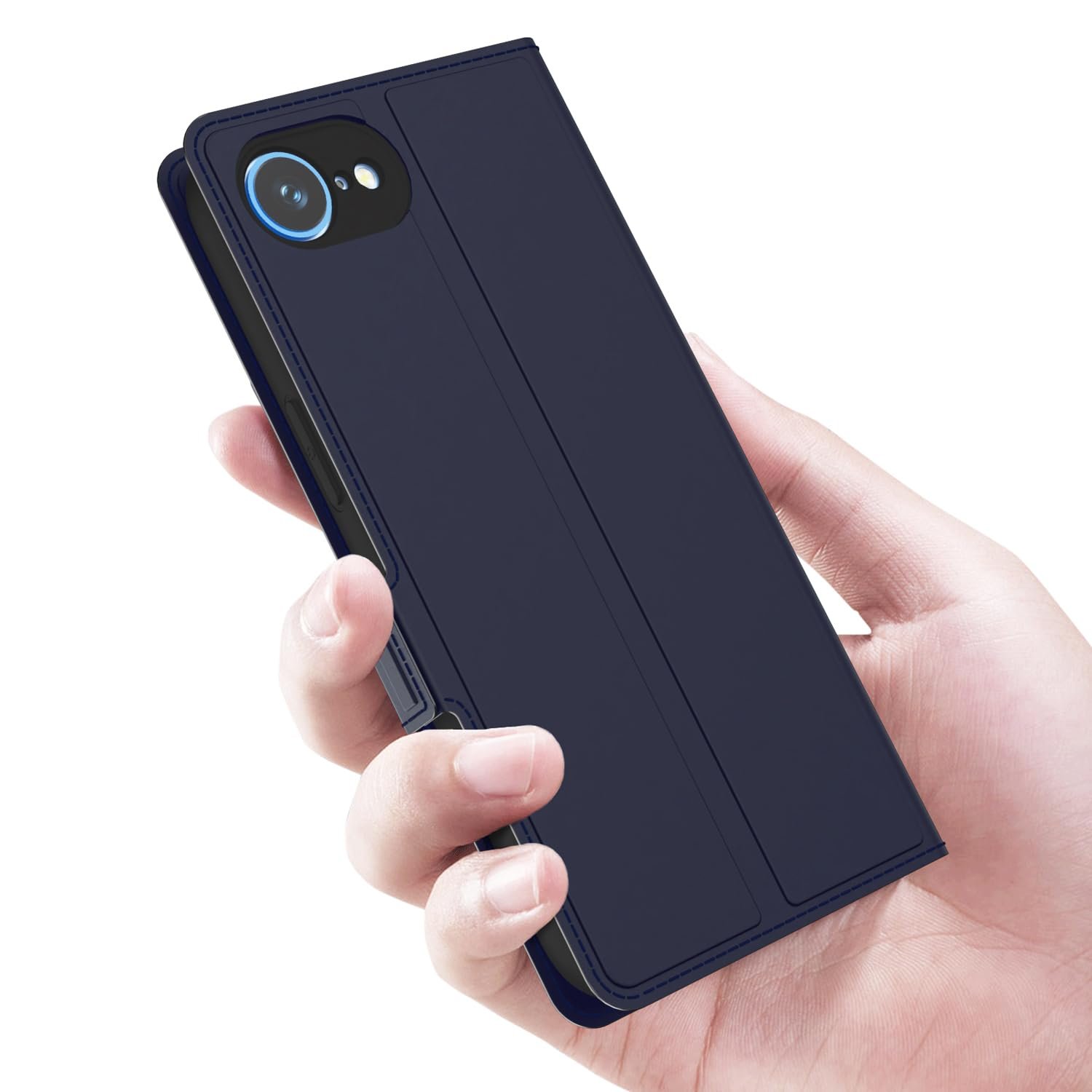 Kapa Noble Slim Magnetic Leather Flip Case Cover for Apple iPhone 16E | Card Holder Stand Flip Wallet Case (Blue)