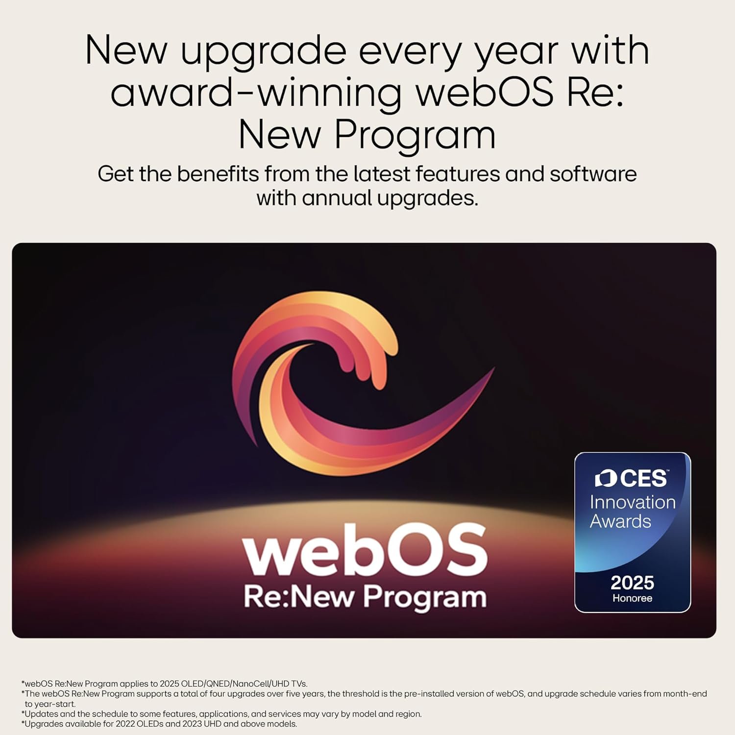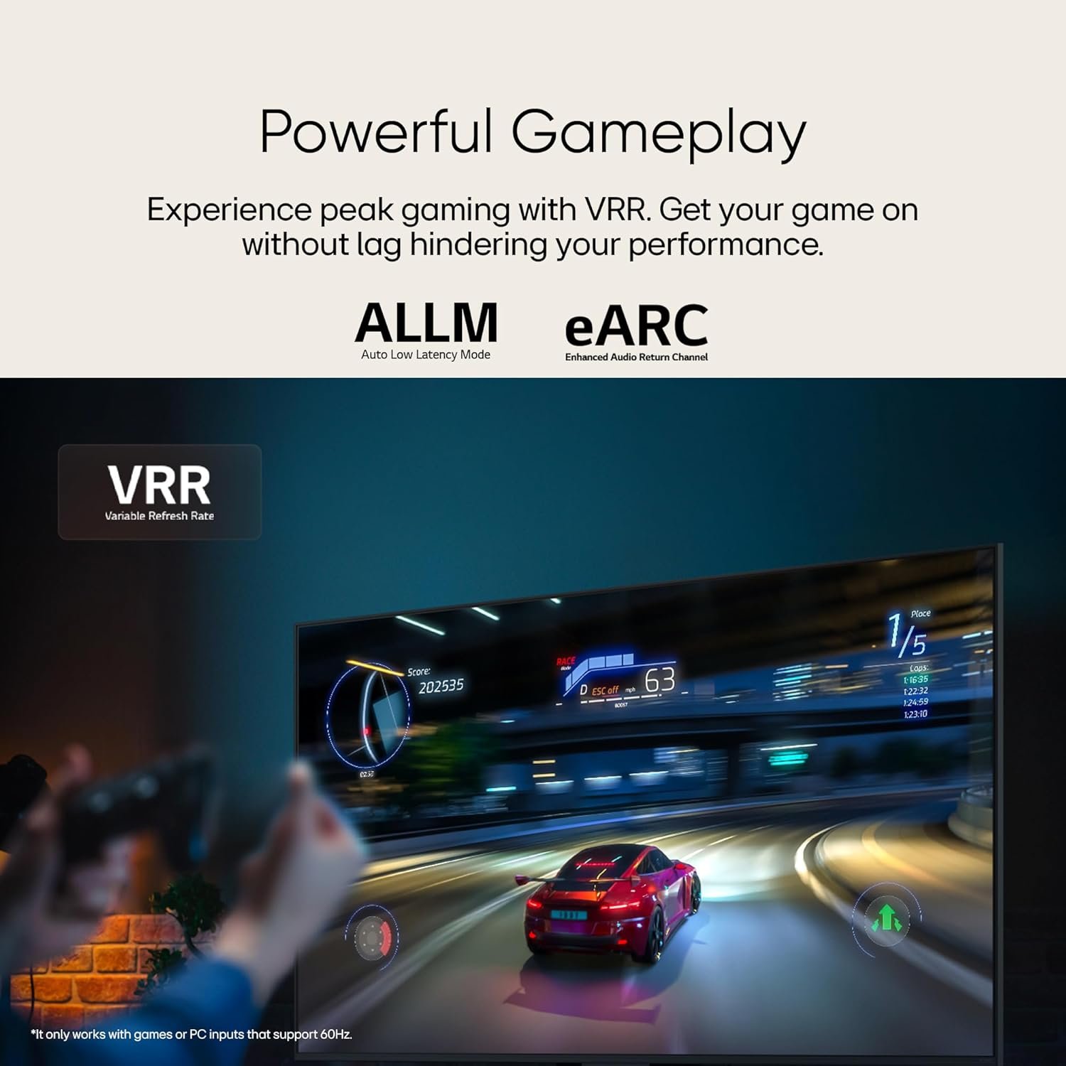 • Smart TV Features: ALLM (Auto Low Latency Mode) | WebOS 25 |Intelligent Voice Recognition (with LG ThinQ app) | AI Chatbot | Works with Hey Google | LG ThinQ /Hub | Google Home / Hub | Works with Apple Airplay| 2 GB RAM | 8 GB ROM | 100+ Free LG Channels | Supported Apps: Prime Video, Netflix, JioHotstar, Sony Liv, Zee5, Apple TV and more | Energy Rating: 2 Star | Annual Energy Consumption: 204.55* kWh/year