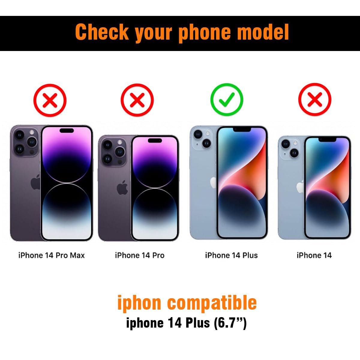 - Compatibility: Only complatible with Apple iPhone 14 Plus. Please confirm your model before Placing order.