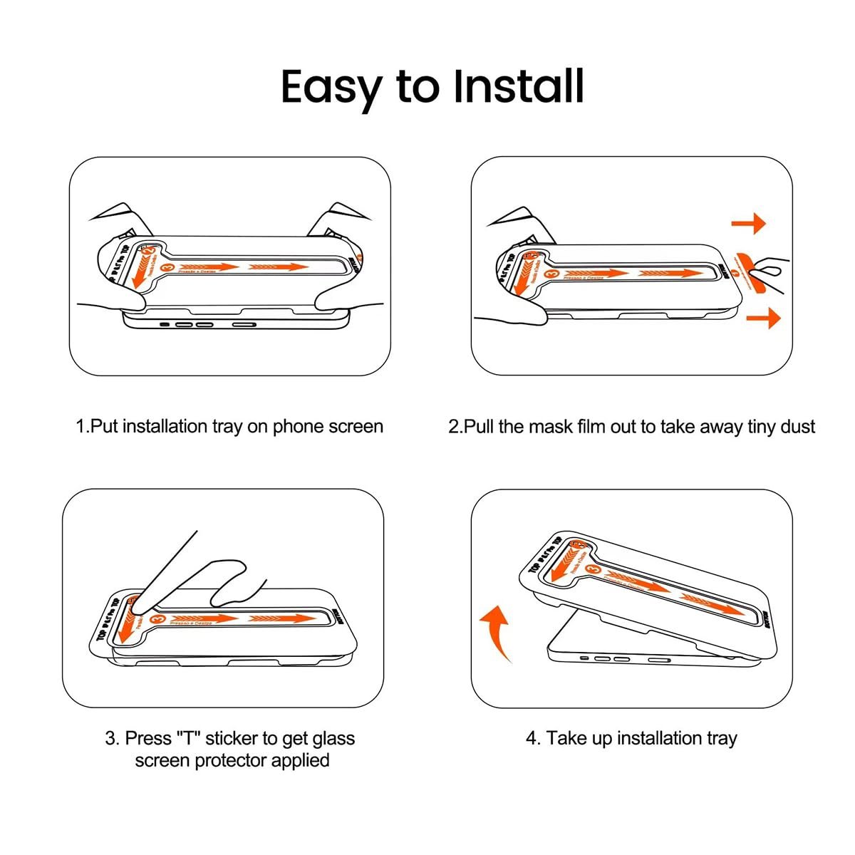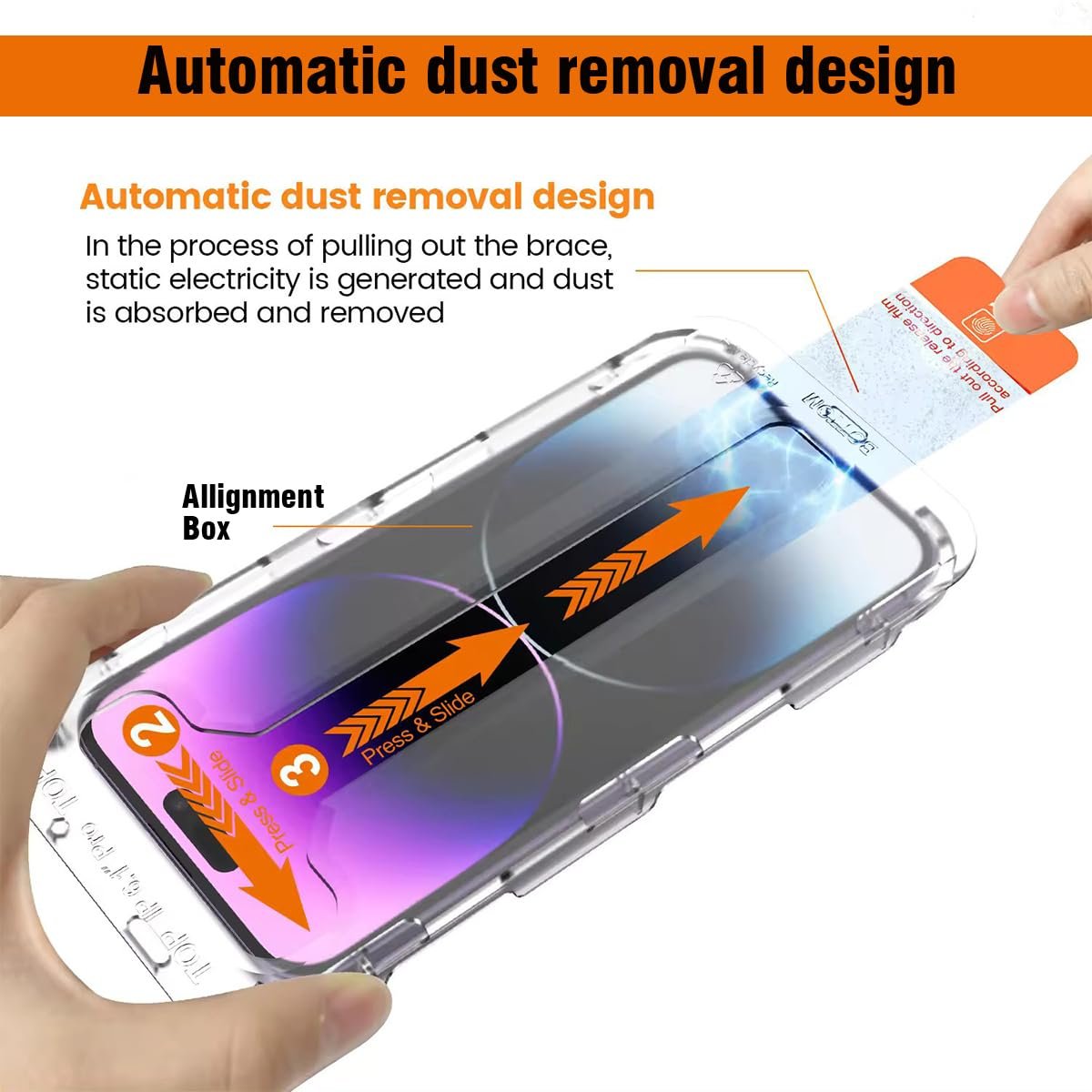 - Automatic Dust Removal Tech: Just cover and pull, the screen protector automatically aligns and takes away the dust. No more worrying about bubbles and dust.