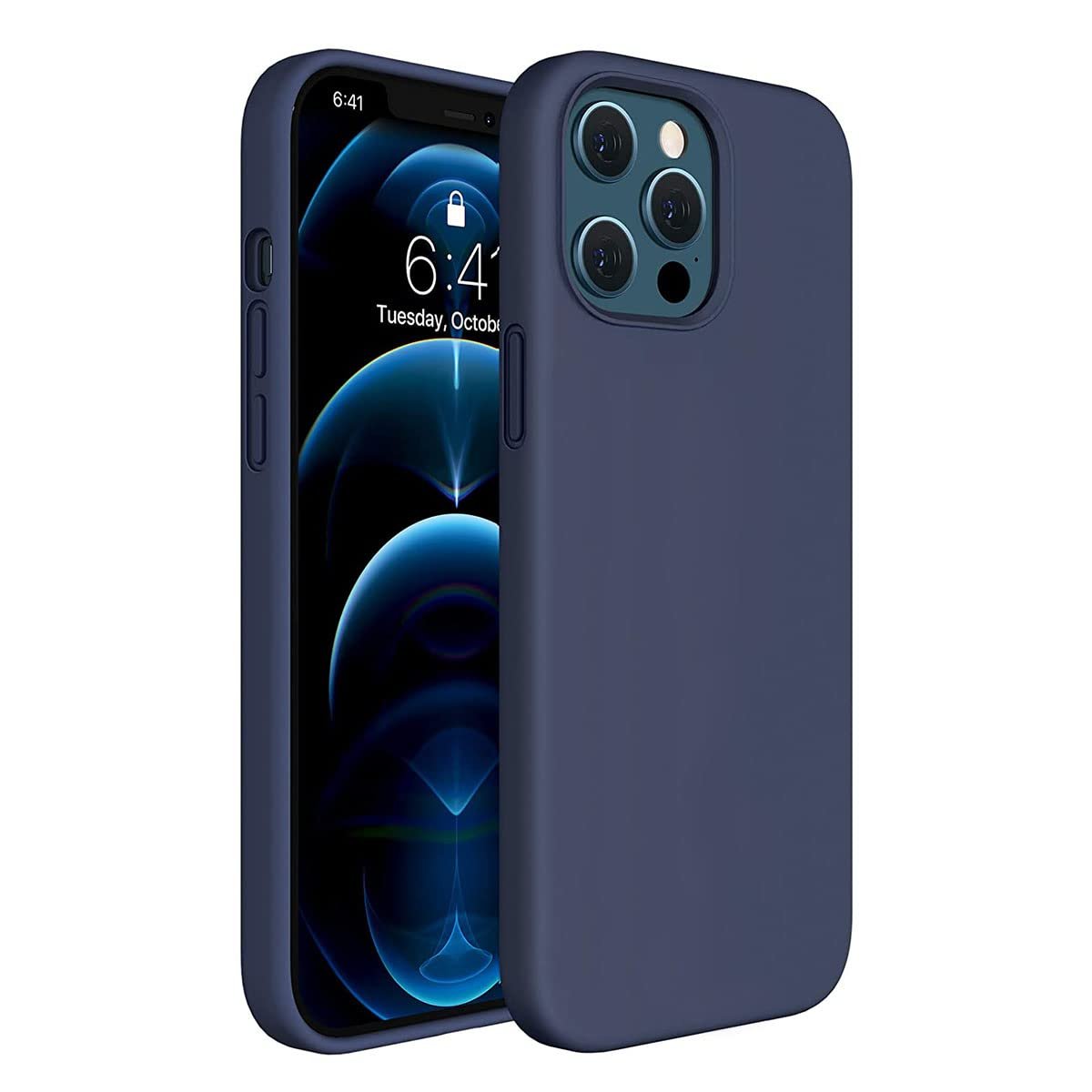 LIRAMARK Liquid Silicone Soft Back Cover Case for Apple iPhone 12 Pro Max (6.7 inch) (Midnight Blue)