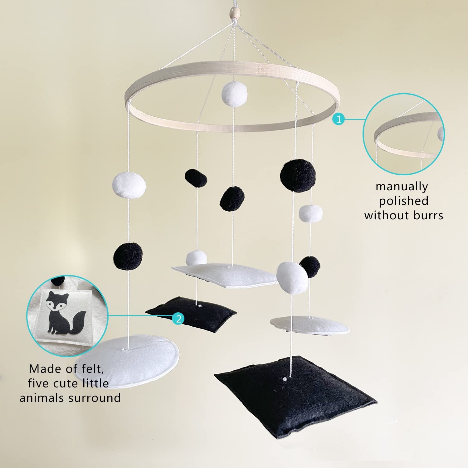 - Safe: Our crib mobile for pack n play is handmade with high-quality felt and filler with padding polyester, environment and safe for baby’s health