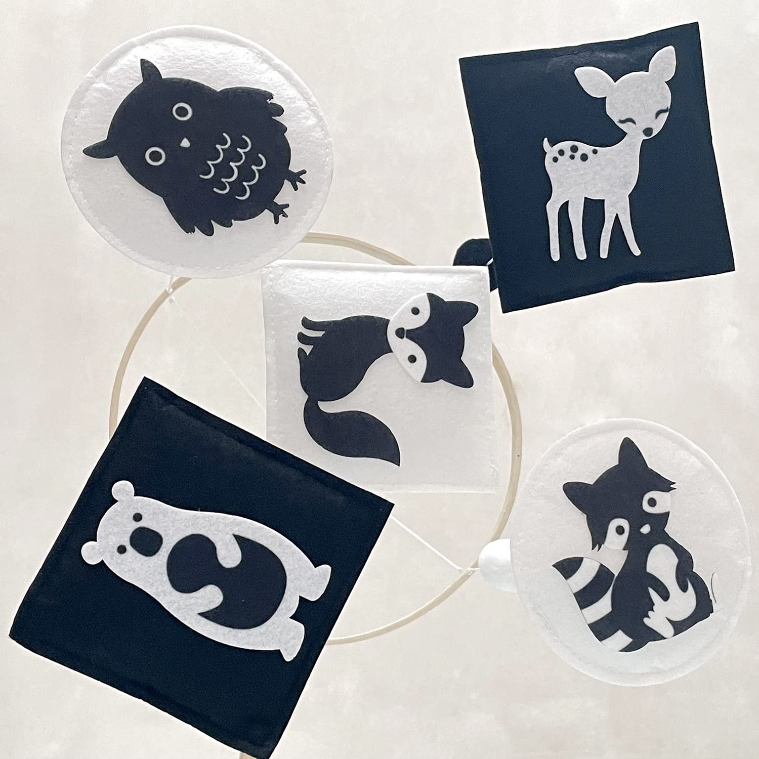 - Unique Design: the animal of our Montessori mobile is towards the baby’s face, the baby is no longer looking at the bottom of the crib mobile. Including five nice woodland animals, fox, raccoon, owl, bear, and deer
