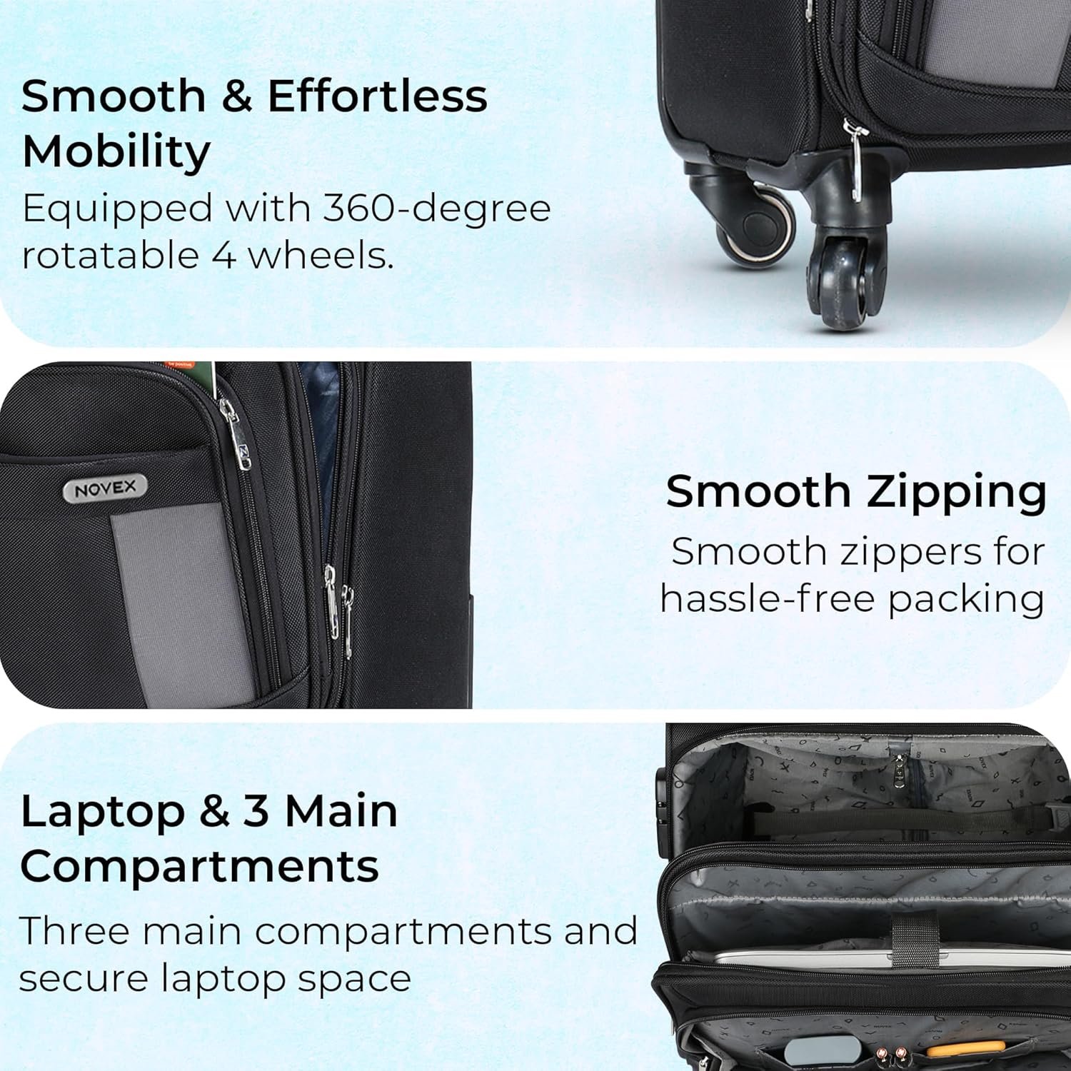 - 【ABOUT NOVEX】— Novex Is A Well-known Brand Specializing In Travel/school Bags And Luggage. They Offer A Wide Range Of Products Designed To Cater To The Needs Of Travelers, From Durable Suitcases To Versatile Backpacks. Novex Products Typically Feature High-quality Materials, And Thoughtful Design Elements Such As Multiple Compartments, Smooth Wheels For Easy Maneuverability, Ergonomic Handles, And Reinforced Corners For Added Durability.