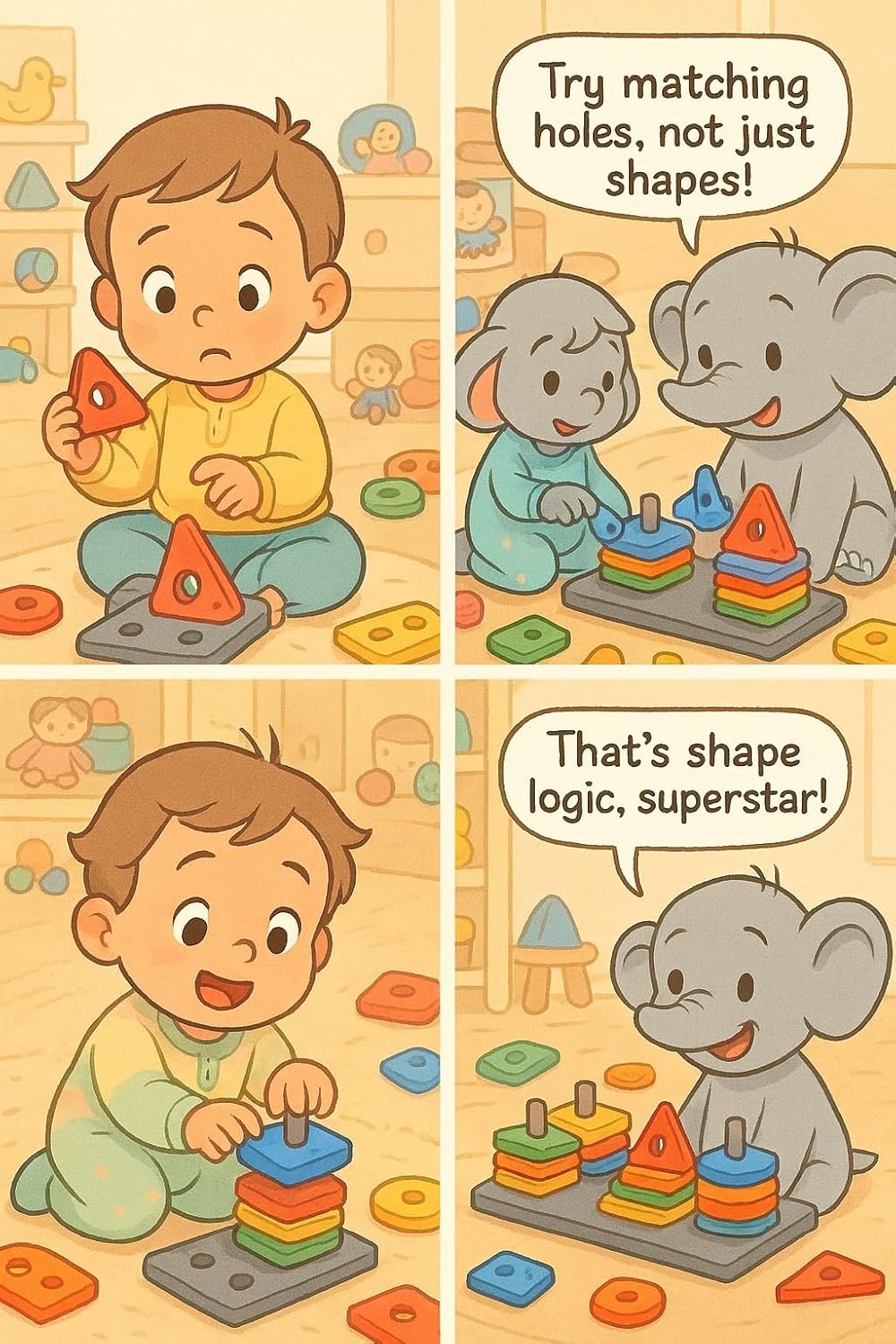 - This Montessori puzzle set is tailored for toddlers with safe sizing, smooth edges, and non-toxic paint. The durable ABS material in the integrated pillar base ensures safety and stability, surpassing traditional wooden bases and mitigating concerns about pillar detachment.