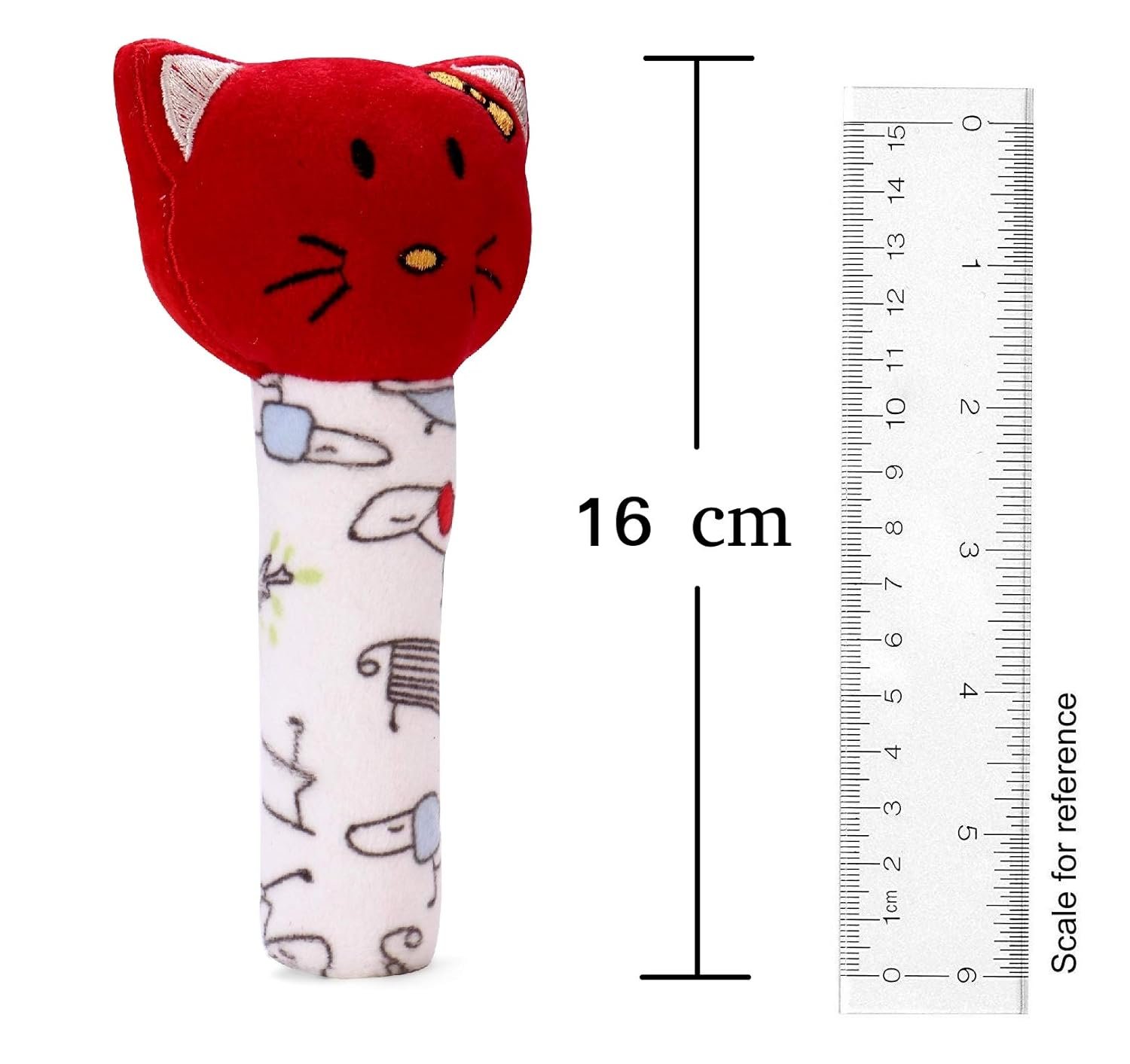 Pikipo Kitty Face Rattle Soft Toy with Squeeze Handle for Squeaky Sound (Red)