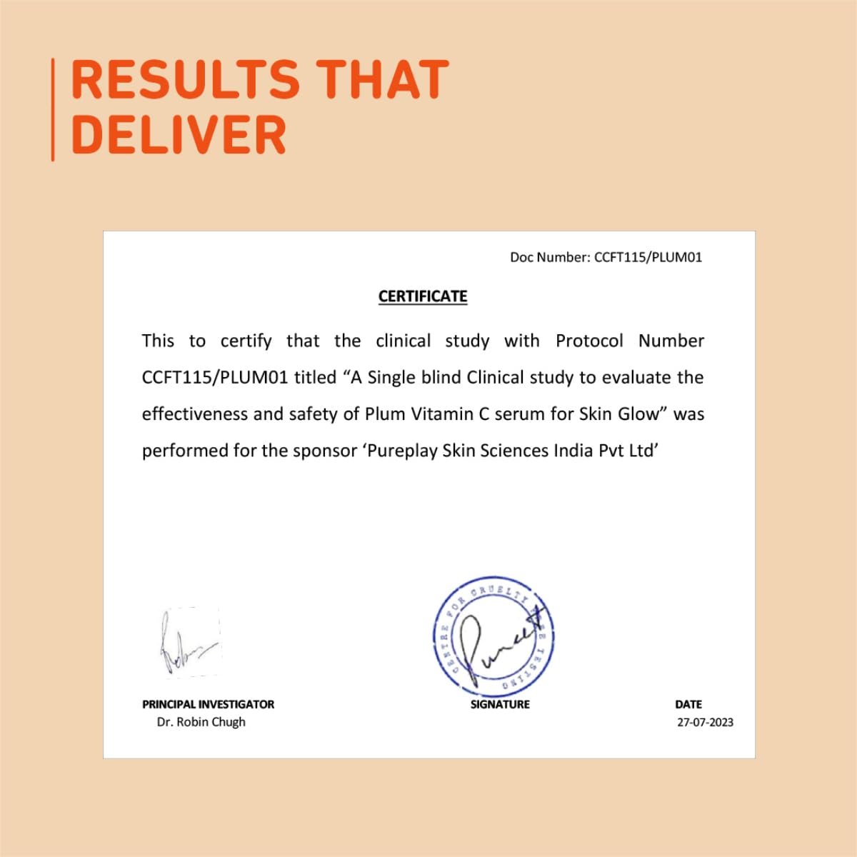 - Lightweight, Non-Sticky, and Dermat-Tested: One of the best vitamin C serums for glowing skin, it has a lightweight texture that absorbs quickly without stickiness. It is dermatologically tested, fragrance-free, and safe for daily use. Whether you need a vitamin C serum for oily skin or a vitamin C serum for dry skin, the Plum 15% vitamin C serum is a clean, effective choice for your daily skincare routine.