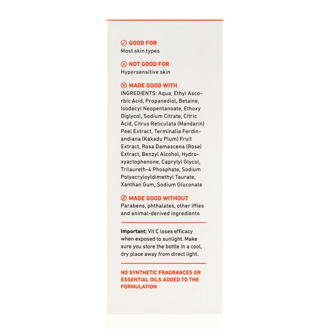 - Antioxidant Rich with Kakadu Plum and Japanese Mandarin: This face serum contains Kakadu plum, one of the richest sources of vitamin C, to help fight free radical damage in your skin. It also contains Japanese mandarin, which helps support the skin’s firmness. Together, they offer a potent formula for visible results.
