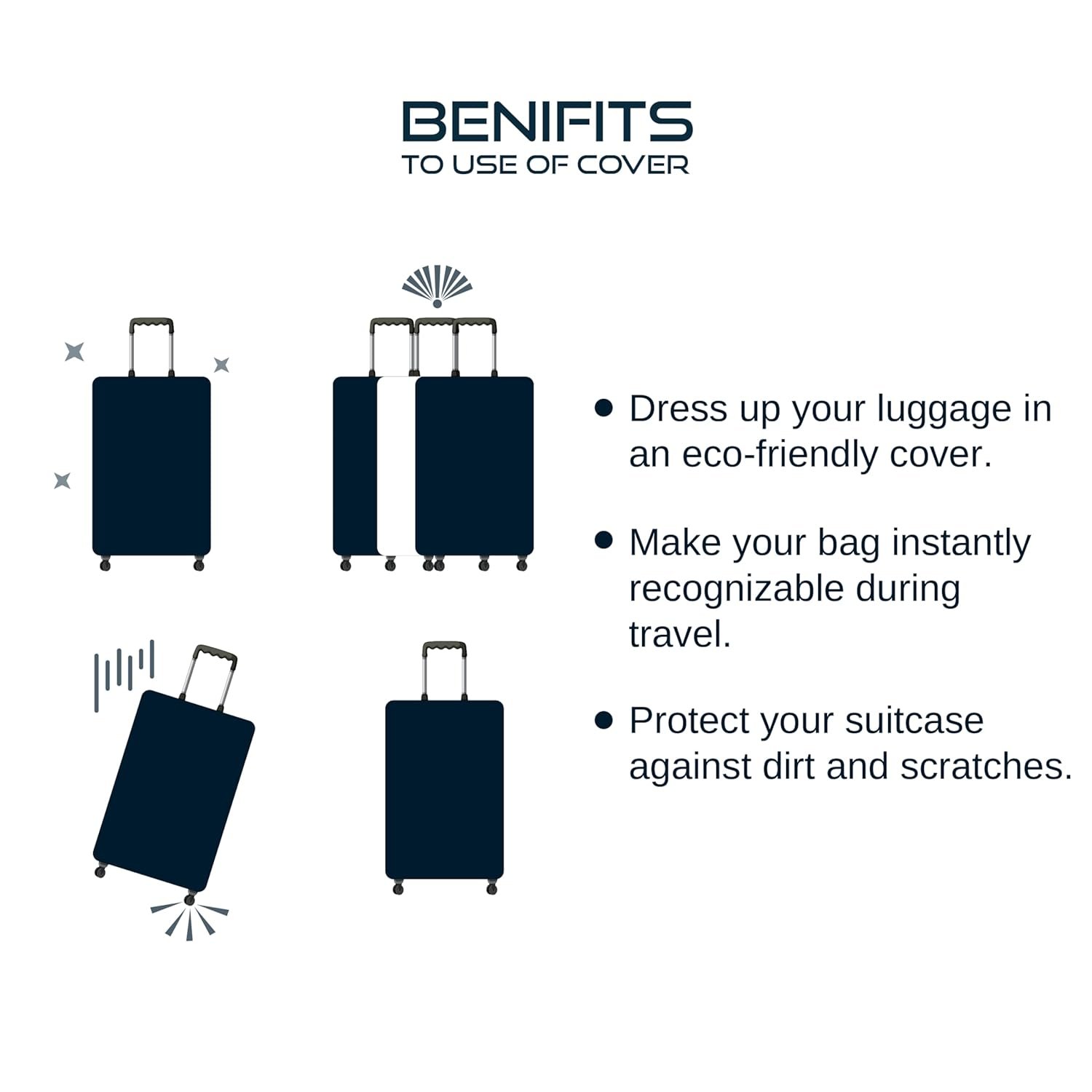 • ➡️ ATTENTION :- Before you buy it, please note: 1. We are selling luggage cover only, no suitcase. 2. Please measure the size of your suitcase so that you can get the right size product. 3. Make sure your suitcase is the standard size. If you are not sure which size you need to buy, please contact us.