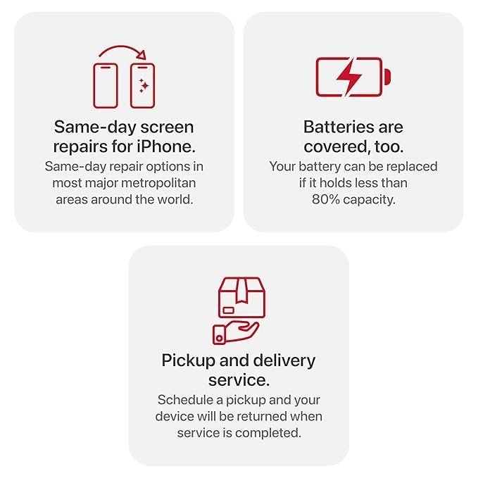 | Special Features | 50GB iCloud storage, Repairs by Apple, Unlimited damage repairs |