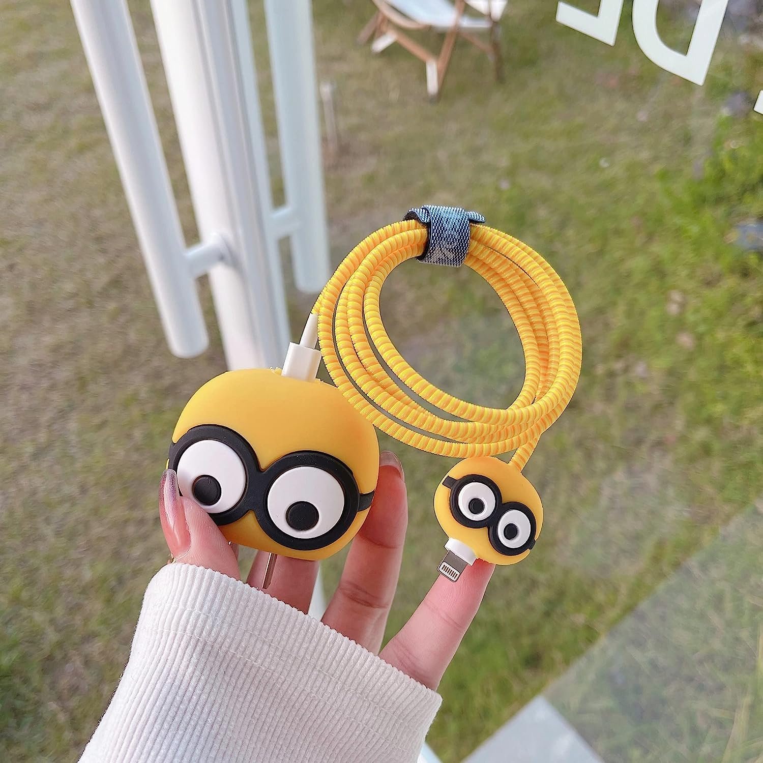 3D Cartoon Design iphone charger cover Silicone Material iphone charger protector Protects Charger and Cable iphone 15 charger cover Bright Henchman Theme iphone charger case Lightweight and Durable charger case
