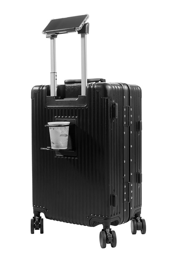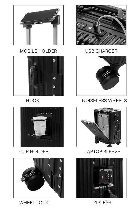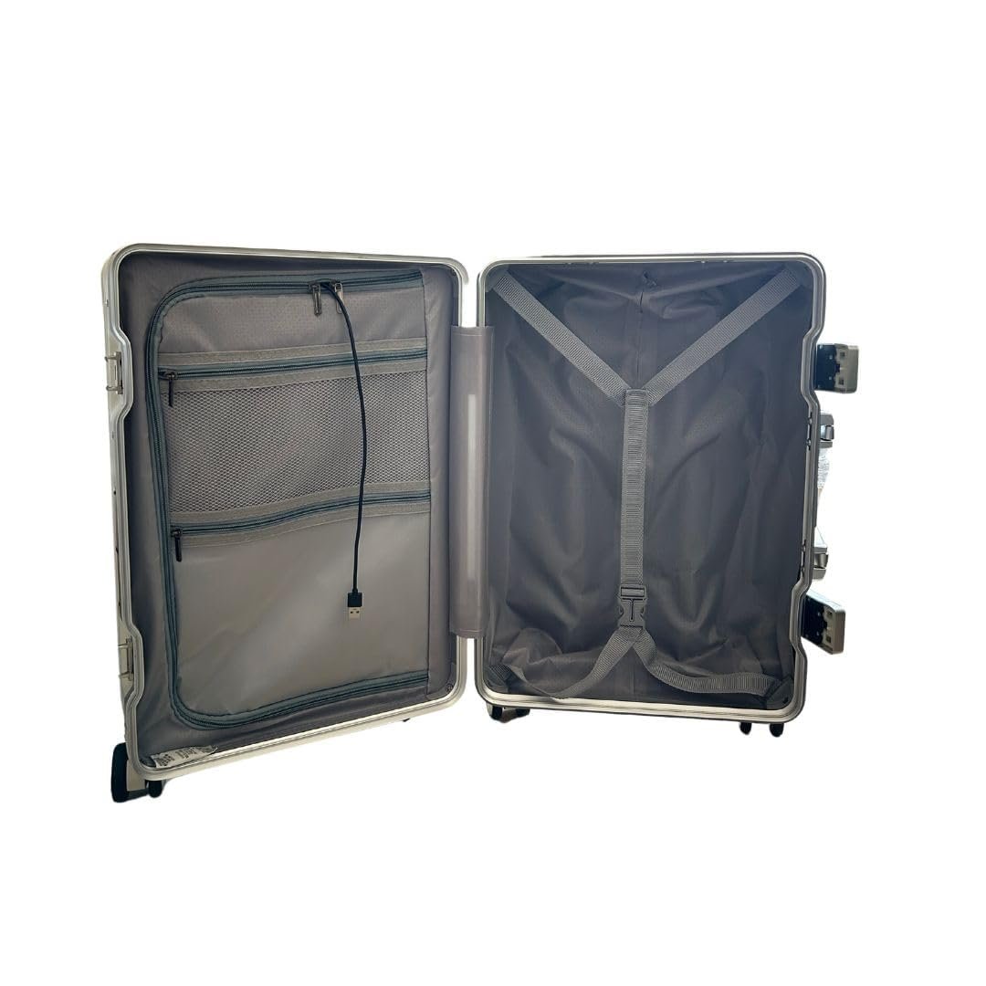 PYB Quest Cabin Zipless Aluminium Suitcase Trolley Bag Experience the ultimate in travel innovation with the PYB Quest Cabin Zipless Aluminium Suitcase Trolley Bag. Measuring 55 cm, this cutting-edge suitcase combines sleek design with high functionality, perfect for the modern traveler. Key Features: Zipless Design: Enjoy a seamless and secure travel experience with a unique zipless closure system, enhancing durability and ease of access. Laptop Compartment: Keep your laptop safe and easily accessible in a padded compartment, making it ideal for business trips or remote work. USB Charging Port: Stay powered up on the go with an integrated USB charging port, allowing you to charge your devices conveniently. Mobile-Cup Holder & Hooks: Effortlessly carry your essentials with a built-in mobile holder and cup holder, plus hooks for added convenience. TSA Lock: Secure your belongings with a reliable TSA-approved lock, ensuring your items are safe during travel. Noiseless 360 Rotating Wheels: Navigate effortlessly through busy terminals with 8 noiseless wheels that rotate 360, providing smooth and silent movement. Shock Absorber Springs: Equipped with shock absorber springs, this suitcase minimizes impact and protects your belongings during transit. Polycarbonate Construction: Made from high-quality polycarbonate, the suitcase is lightweight yet durable, designed to withstand the rigors of travel. Elevate your travel experience with the PYB Quest Cabin Zipless Aluminium Suitcase Trolley Bagwhere innovation meets style!